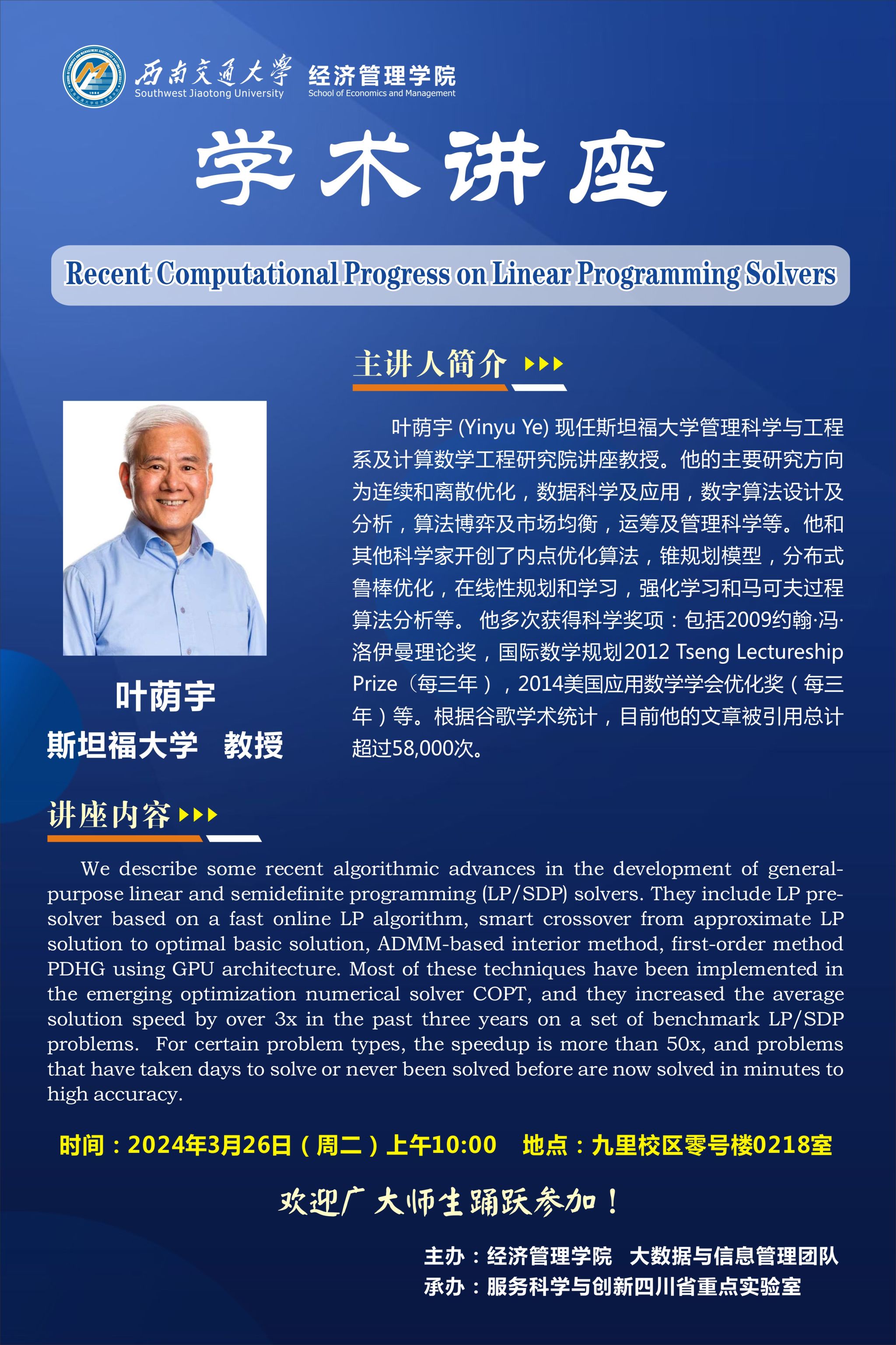 斯坦福大学叶荫宇教授学术讲座