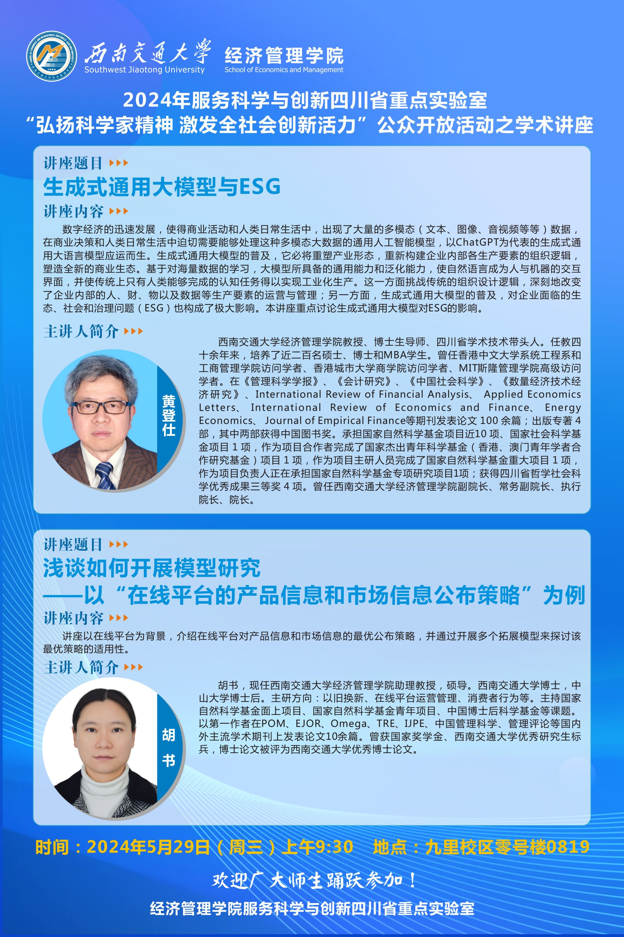 HAHA体育黄登仕教授及胡书助理教授讲座