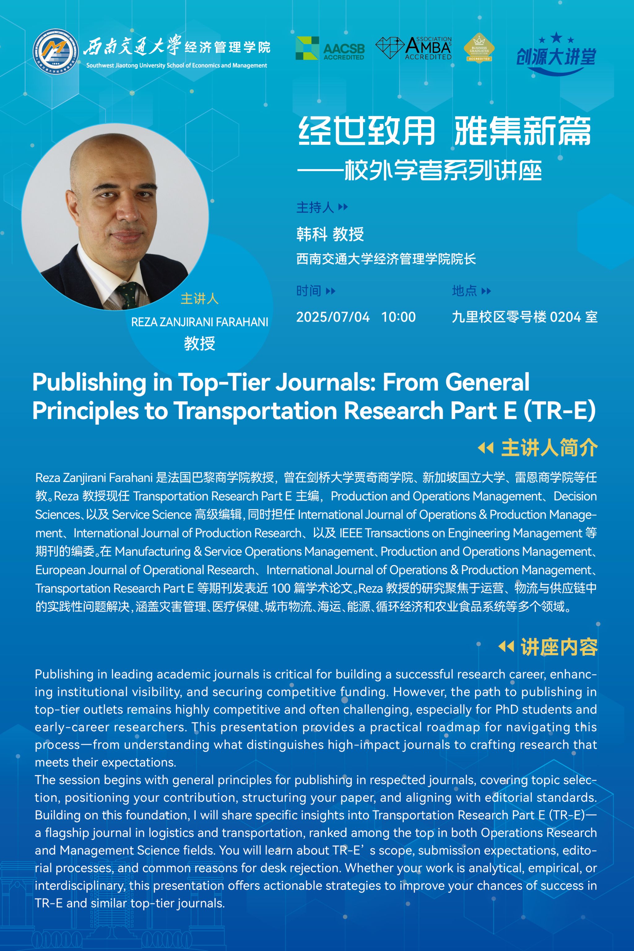 法国巴黎商学院REZA ZANJIRANI FARAHANI教授学术讲座