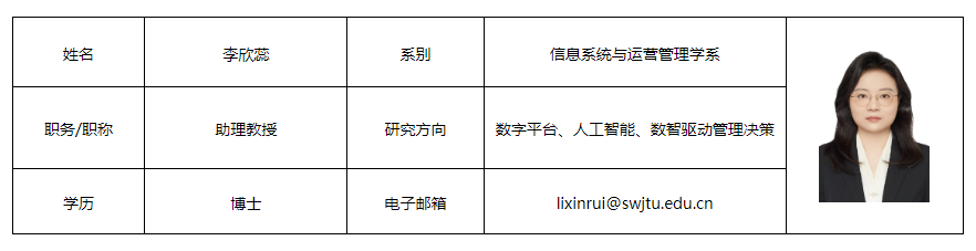 在信息系统、人工智能等领域的国际高水平期刊和会议发表多篇论文,包括ACM Transactions on Information Systems、Information & Management、Information Processing & Management、International Conference on Information Systems、INFORMS Annual Meeting等。参与多项国家自然科学基金面上项目,曾获国家奖学金、北京市优秀毕业生称号。