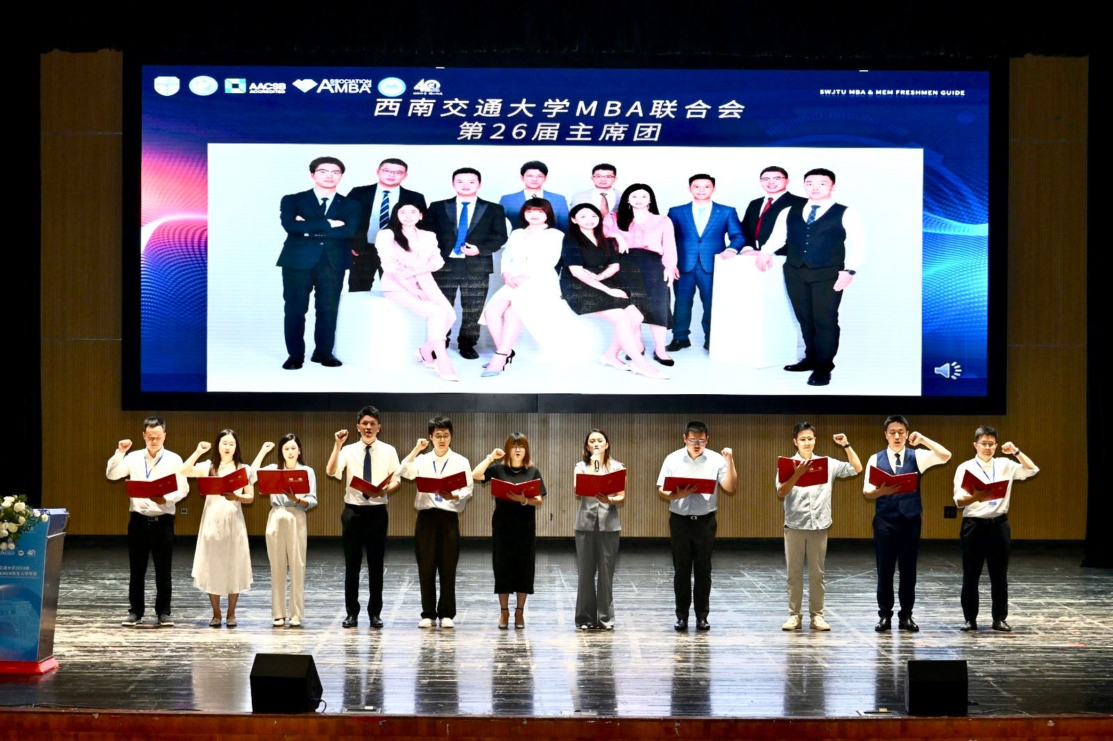 第26届MBA联合会主席陈文莉代表主席团发言,并分享了对MBA联合会的认识以及未来发展规划,她表示哈哈体育MBA联合会将继续坚持以文化传承、智慧赋能、链接共生的核心理念,秉承拓宽横向交流平台的对内服务和持续增强交大MBA影响力的对外发声职能,打造属于西南交大MBA人共同成长的平台。