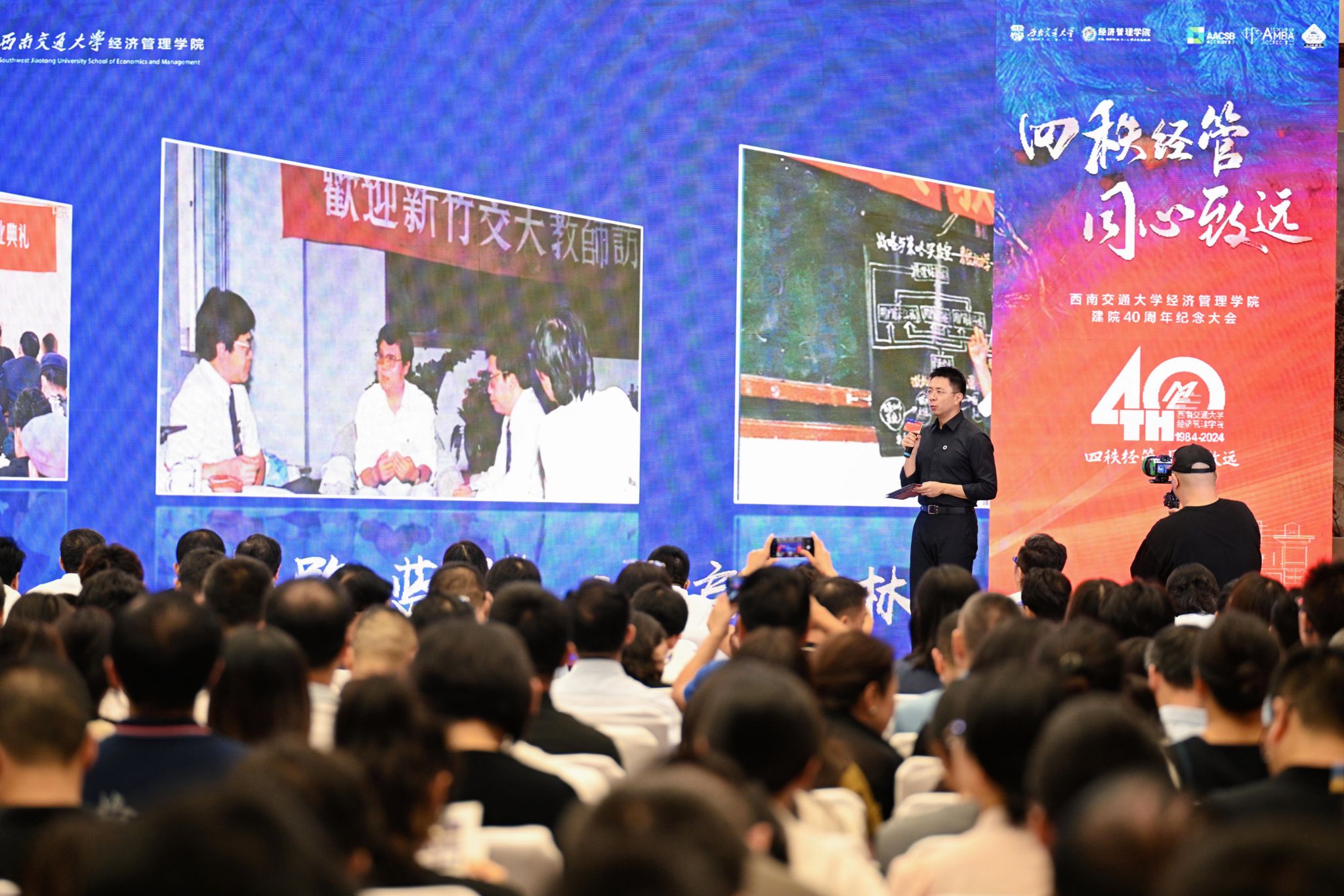 余敏明在致辞中向一直以来关心和支持哈哈体育,关心和支持哈哈体育经管学院建设与发展的领导、来宾表示衷心的感谢。他指出,建院四十年来,HAHA体育秉承“竢实扬华、自强不息”的交大精神,与改革开放同向同行、与时代发展同频共振,在管理科学与工程、工商管理团队建设、人才培养、科学研究、咨政建言等方面取得了显著成绩。余敏明强调,希望学院坚持党建引领,以高质量党建引领学院事业高质量发展;深化改革发展,激发创新活力;拓宽国际视野,打造学术重镇;牢记使命担当,矢志建设一流经管学院。期待新时代经管人进一步强化抢抓机遇、乘势而上的主动性,以时不我待、只争朝夕的担当精神,推动经管学院实现高质量发展,奋力建设一流的经管学院,为学校加快建设一流大学,作出西南交大经管人的贡献。