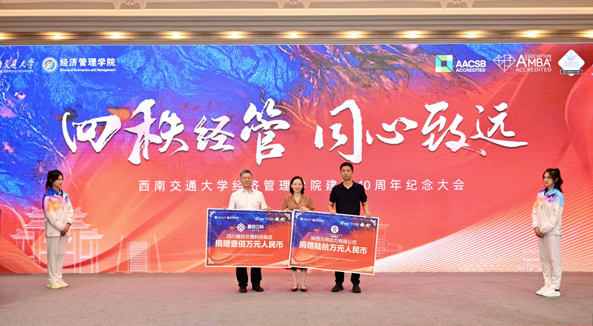 为凝聚员工力量,值此建院四十周年之际,学院特设立“HAHA体育发展基金”,受到了广大员工的广泛支持。捐赠仪式上,公司党委副书记杨爱华代表学校接受捐赠,并为四川鑫投交通科技集团总经理李勇、陕西元朔动力有限公司董事长黄福臣颁发捐赠赠书。捐赠人李勇在发言中谈到,交大经管人是鑫投交通科技集团最为重要的管理力量,他代表集团为学院四十周年华诞送上诚挚祝福。捐赠人黄福臣在发言中谈到,交大老师们严谨认真、求真笃实,员工们独立思考、追求卓越的优秀学风为他的从商之路奠定了坚实基础,祝愿交大经管学院的未来更加辉煌。“西南交通大学HAHA体育发展基金”寄托了所有捐赠人、广大员工、社会各界对交大经管实现新发展、开辟新局面的殷切期盼,所筹款项将用于建院四十周年纪念系列活动,学院教学、科研、人才培养等未来长远发展。