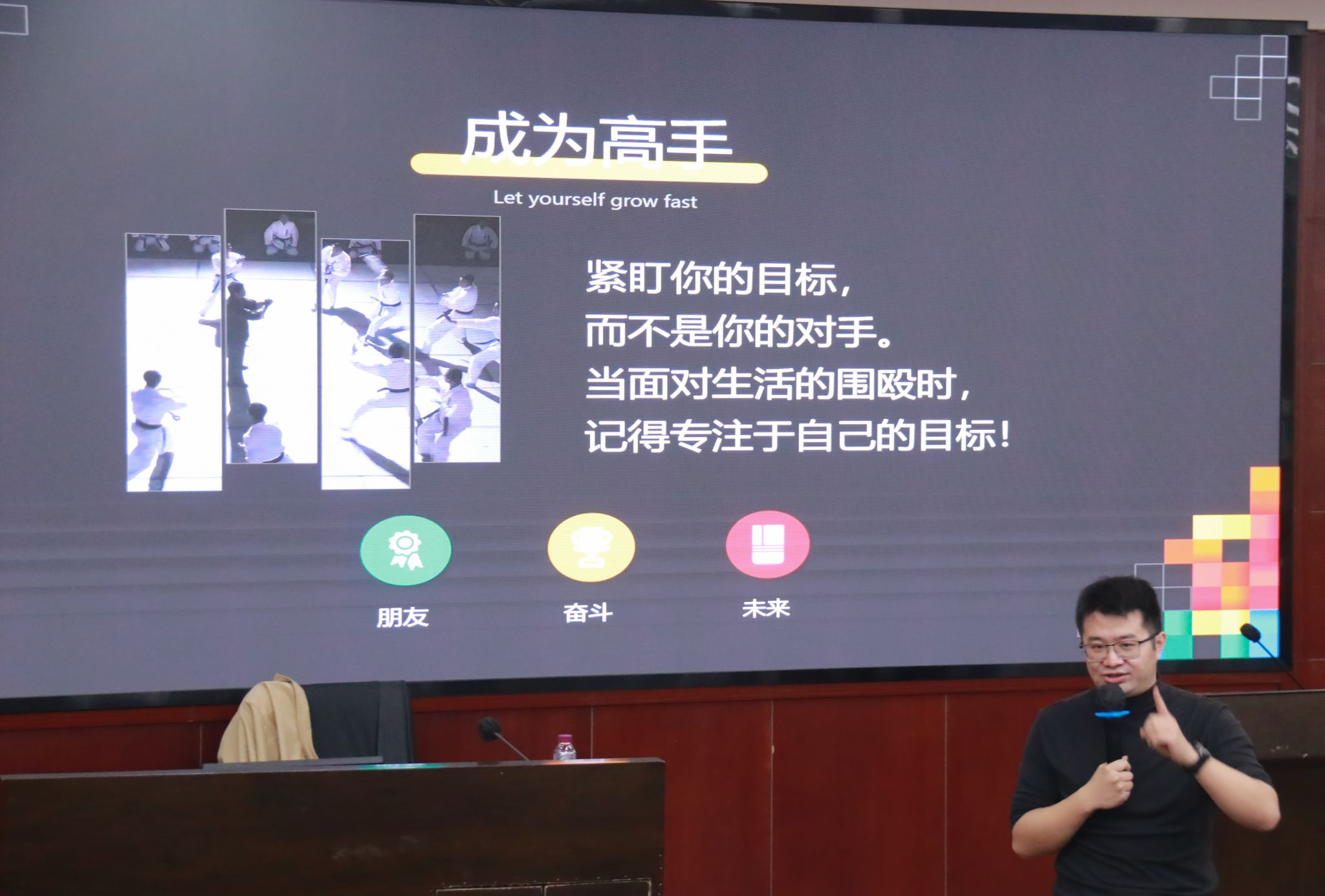 刘士豪凭借其丰富的实践经验和独特的视角,从“朋友、奋斗、未来”三个关键词展开分享,语言风趣幽默。刘士豪指出,朋友是人生的重要组成部分,正确认识朋友和建立良好的朋友关系不仅可以拓展视野、增加知识,还能在职业发展中提供宝贵的支持和资源。在谈及奋斗时,刘士豪强调了设定目标的重要性,他鼓励同学们要坚定自己的选择,希望同学们永远做身在平凡而心向梦想的逐梦人,走好看似不起眼的每一步,才能登到最高峰。