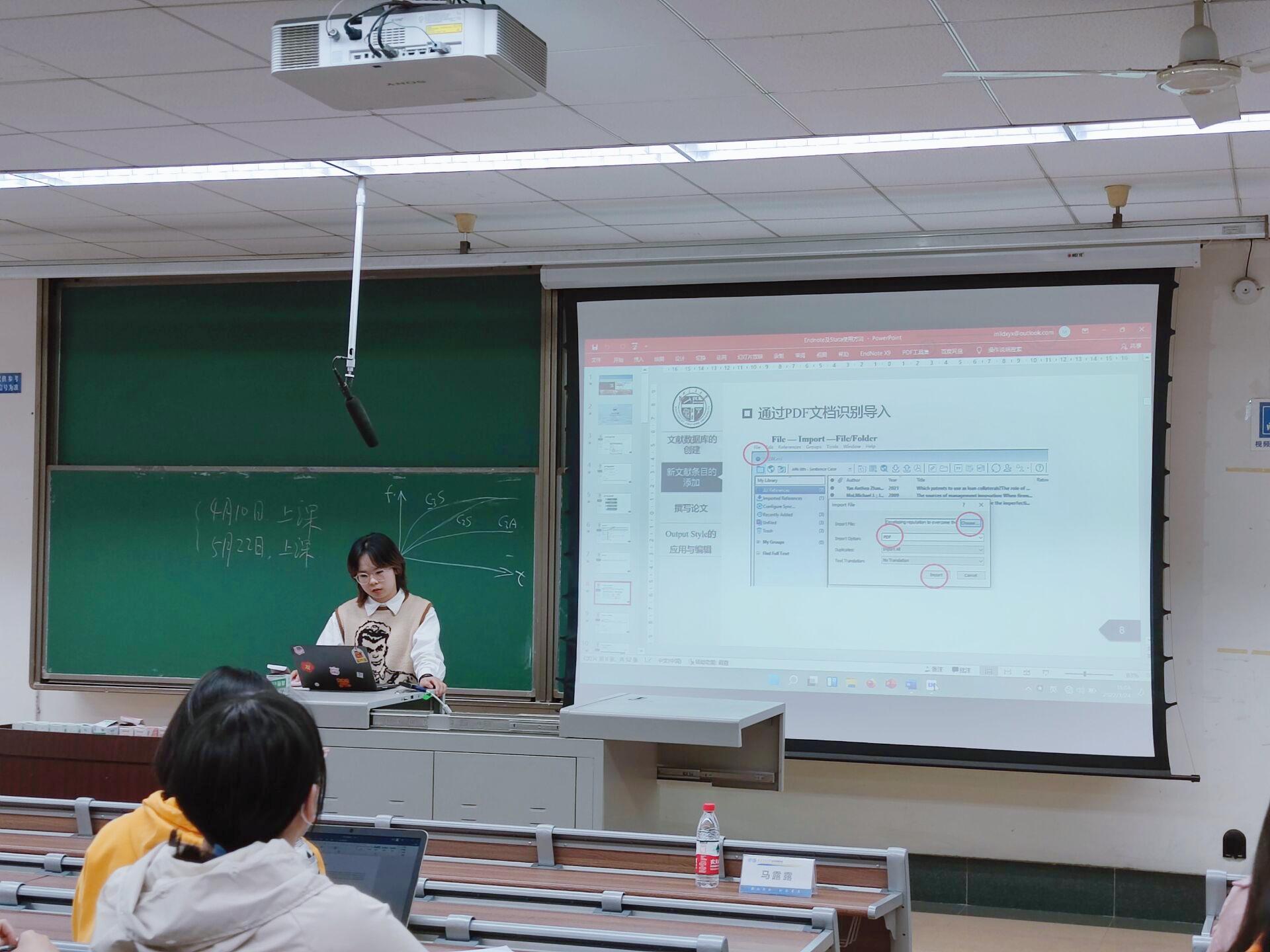 首先,针对大规模文献整理与阅读不便的普遍情况,马露露老师分享Endnote这款文献管理软件。马露露老师示范使用Endnote,并详细解答了同学们在实际操作中遇到的问题,使同学们充分学习了Endnote的使用技巧。