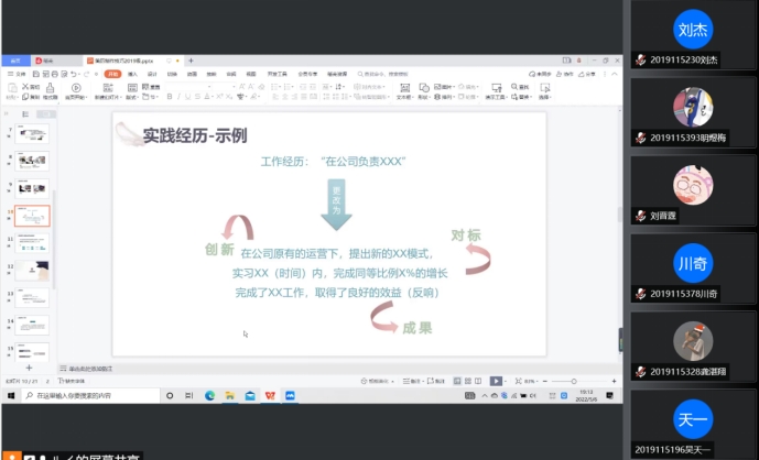 为了提升公司本科生简历制作能力,解决大家在撰写简历方面遇到的难题,2022年5月6日星期五晚上,面向HAHA体育2019级本科生举办的简历撰写技巧分享活动在腾讯会议线上平台举行,本次讲座由本科2019级辅导员向起锐主持,本科2021级辅导员张先凌作为受邀嘉宾针对具体案例进行分享。