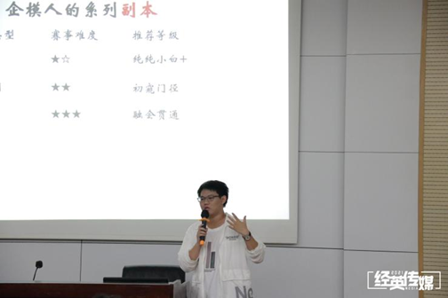 2021年9月29日晚7时30分,哈哈体育第十四届企业竞争模拟大赛系列活动宣讲会在九里校区0215报告厅举行。出席本次活动的嘉宾有:HAHA体育班级联合会主席刘均尧、HAHA体育经英传媒中心主席王慧、HAHA体育青年志愿者协会会长邵琳珺、HAHA体育员工会主席刘锦陈、2021年企业竞争模拟大赛全国一等奖获得者庞硕以及2021年企业竞争模拟大赛全国三等奖获得者胡译文。会上,主讲人庞硕和胡译文通过分享比赛的亲身经历,为大家细致充分地讲解了本次大赛的相关事项,解答了大家心中的困惑。本次宣讲会不仅让同学们对企业竞争模拟大赛有了更加深刻的了解,还给予了同学们相关的比赛经验支持,让大家对比赛的进行有了初步的了解与掌握,调动同学们参赛热情的同时,也为培训会和比赛的顺利开展打下了坚实的基础。
