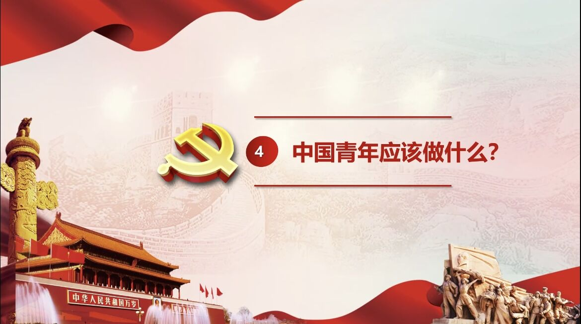 主讲人贾佳就中国共产党第一次全国代表大会到中国共产党第十九次全国代表大会和中国共产党的发展历程提出了相关问题,团干部们踊跃参与,积极回答。培训过程中,团干部们通过视频与主讲人的讲解,丰富了自身的知识储备。在学习后,团干部们深刻认识到了中国共产党在探索社会主义道路上的艰难曲折,熟悉了党的成长历程。最后,贾佳提出面对新的困难和挑战,当代中国青年应当怎么做的话题,引发了团干部们的深刻思考与激烈讨论。