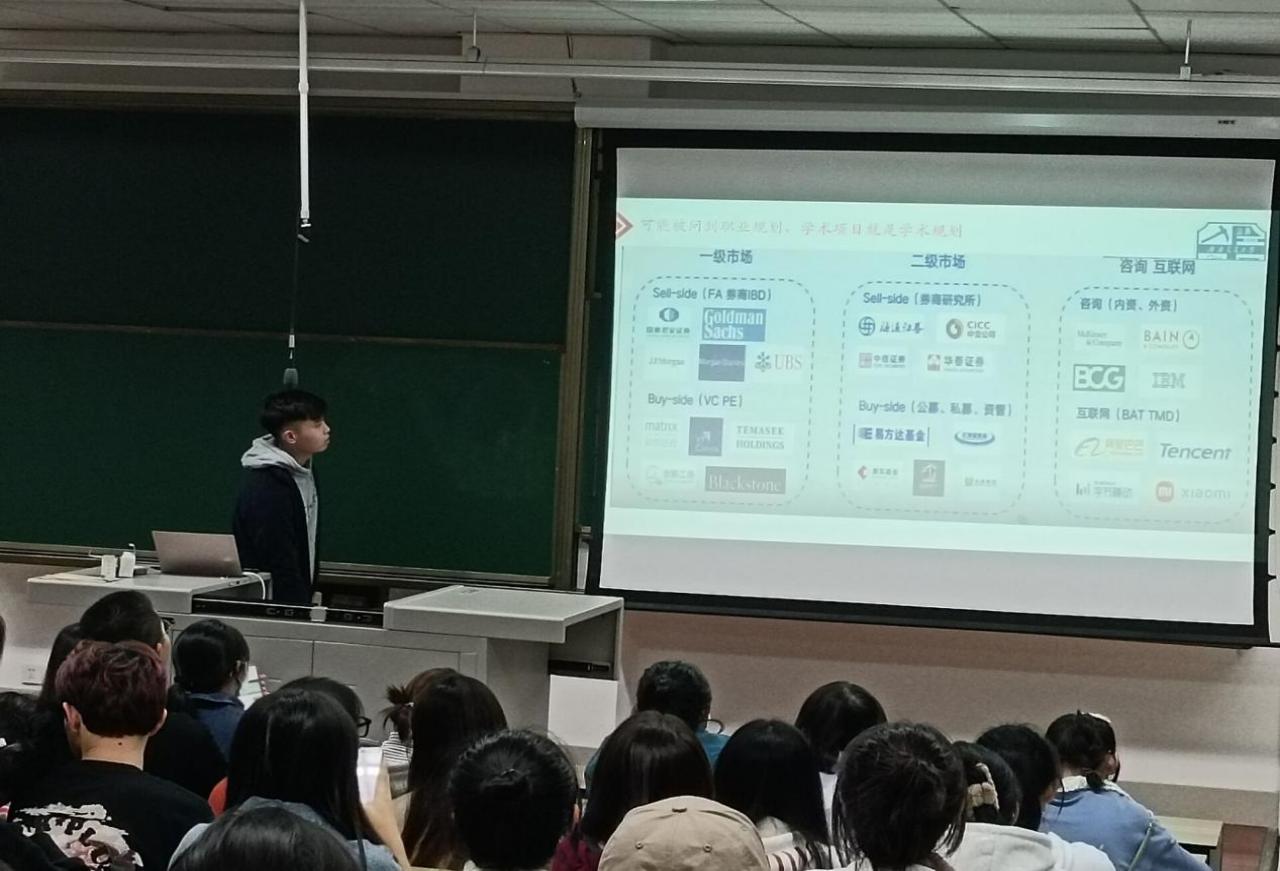 然后,刘江原学长分享了他保研至中央财经大学的经验。刘江原学长首先向我们展示了夏令营的情况简介,并分享了自身的夏令营经历。接下来他强调了当今竞争激烈的保研申请形势,呼吁同学们理性思考、做好规划。此外,他还给不同专业的同学们分别推荐了院校,提醒同学们多收集资料,早做规划。最后,他介绍了实习职业规划,解释了一级市场、二级市场以及互联网咨询等相关概念。
