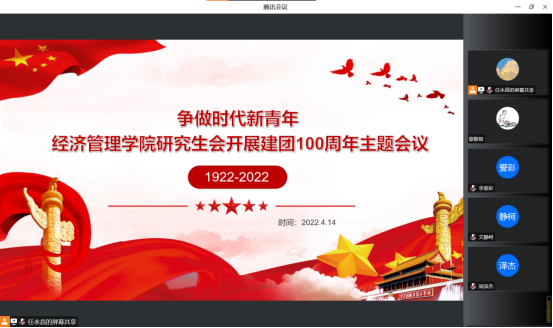 2022年是中国共产主义青年团建团100周年,为致敬峥嵘岁月,献礼建团百年,公司研究生会于2022年4月14日在线上开展“建团100周年”主题会议,大家共同学团史、知团情,一起回顾中国共青团百年光辉岁月,探讨学习重要精神。
