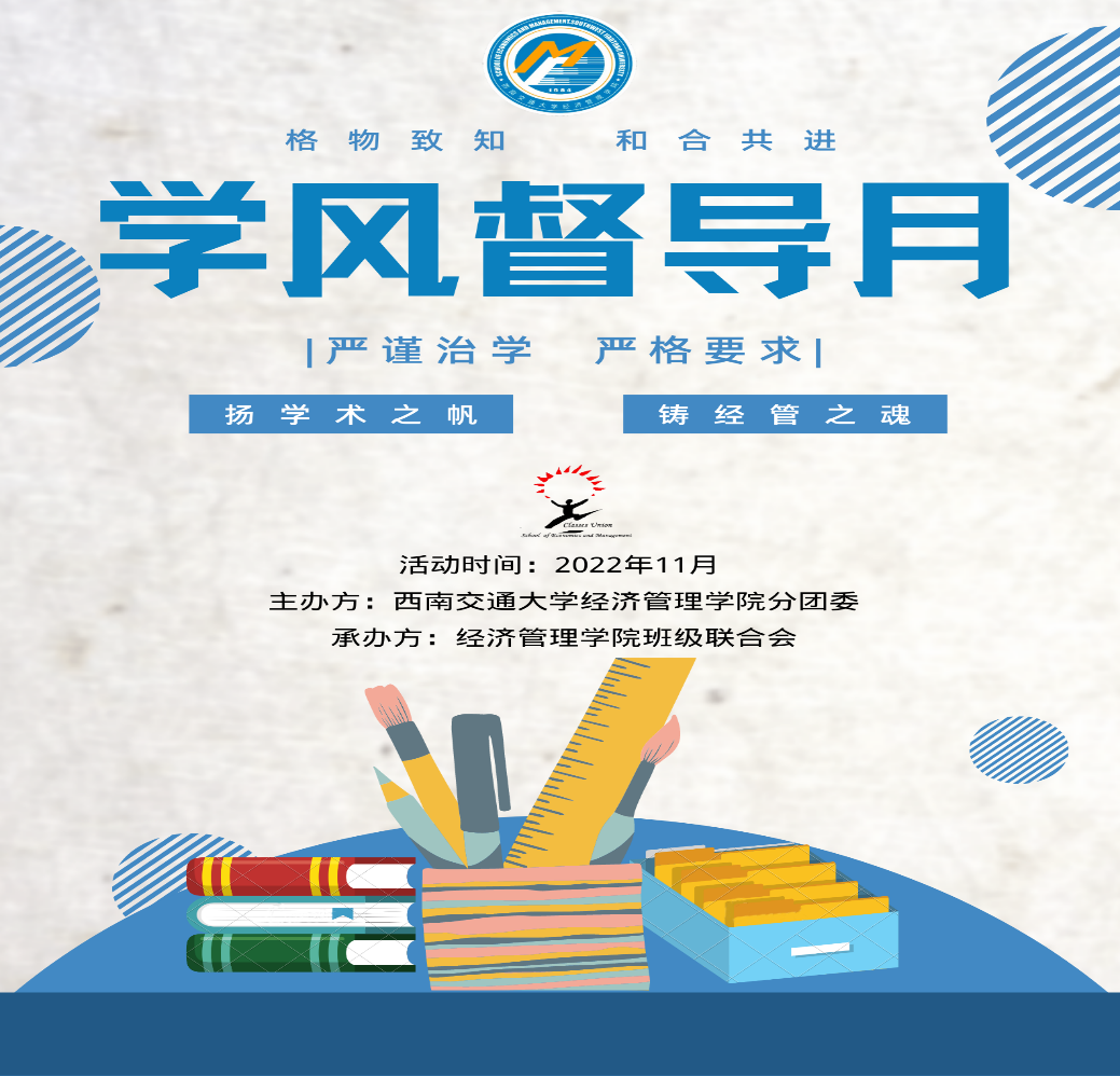 2022年11月7日,“扬学术之帆 铸经管之魂”学风督导月活动正式开始。本次活动历时一个月,主要包括课堂督察、学风建设活动、中期学委交流会、学风建设沙龙、决赛答辩系列环节。活动对象为HAHA体育本科2021、2022级所有员工。