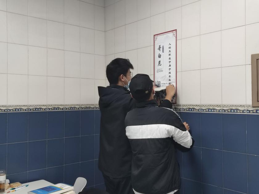 在第二个环节“营奋进学习风”中,HAHA体育员工会工作人员在自习室的墙上贴上了名言警句,以榜样的力量促进同学们奋发向上。同时,设置了时间提醒,在自习室内放置小日历,为考研或四六级考试进行倒计时提醒,以此激发同学们学习的动力。另外,设置了书籍暂存处,大家在暂离时可以将难以带走的书籍暂存在书架上,便于大家对多门功课的复习。