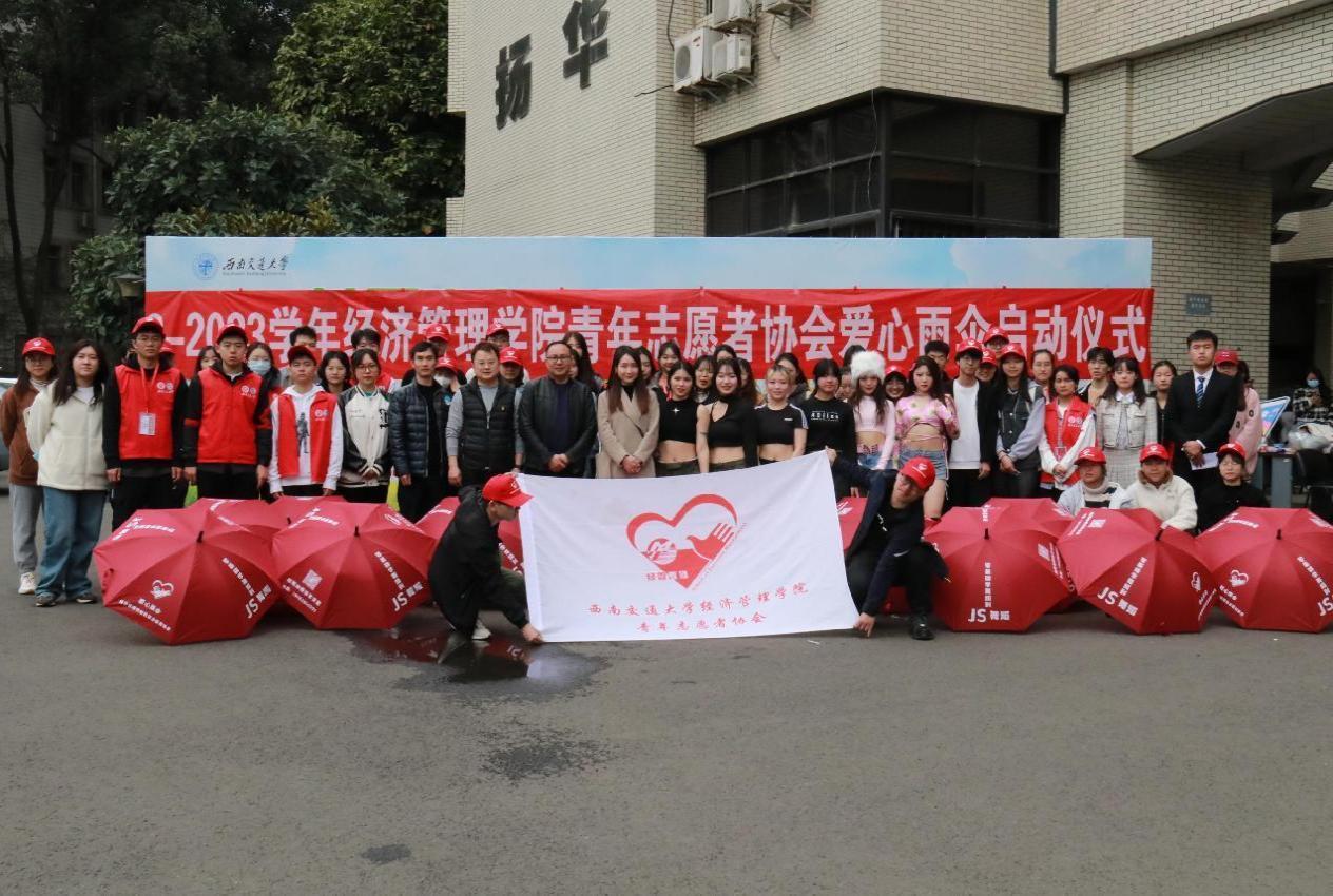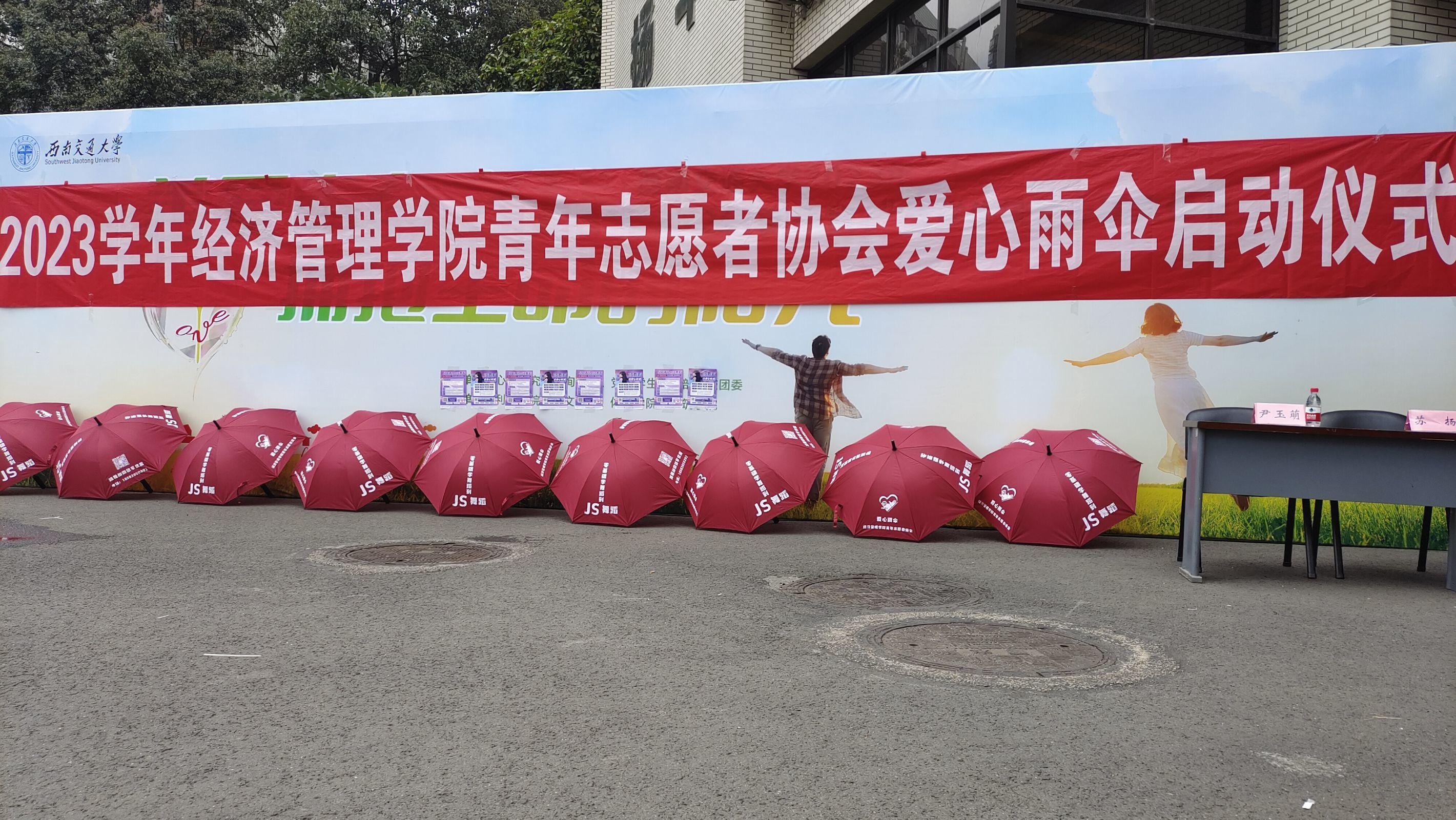 成都天气多变,大雨来临毫无预兆,为切实解决广大师生无伞可用的燃眉之急,经济管理公司青年志愿者协会成员将“启动仪式”后在教学楼、图书馆、寝室楼等人员来往密集处放置共享爱心雨伞,最大程度地为老师和同学带来便利。一直以来,爱心雨伞为交大师生遮挡住寒风夹杂着的雨水;为交大师生撑起一方温暖安宁的天地,搭建起一座座风雨不侵的“透明小屋”,成为同学们心中独特的雨天记忆。如今,“爱心雨伞”再度出发,传递温暖步履不停。