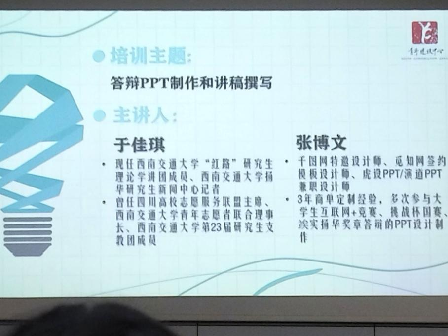 本次培训在于佳琪、张博文两位同学的精心讲解后,同学们对讲稿撰写与ppt制作的理解更加深刻,思路更加开拓,对同学们综合素质的提升提供了帮助。