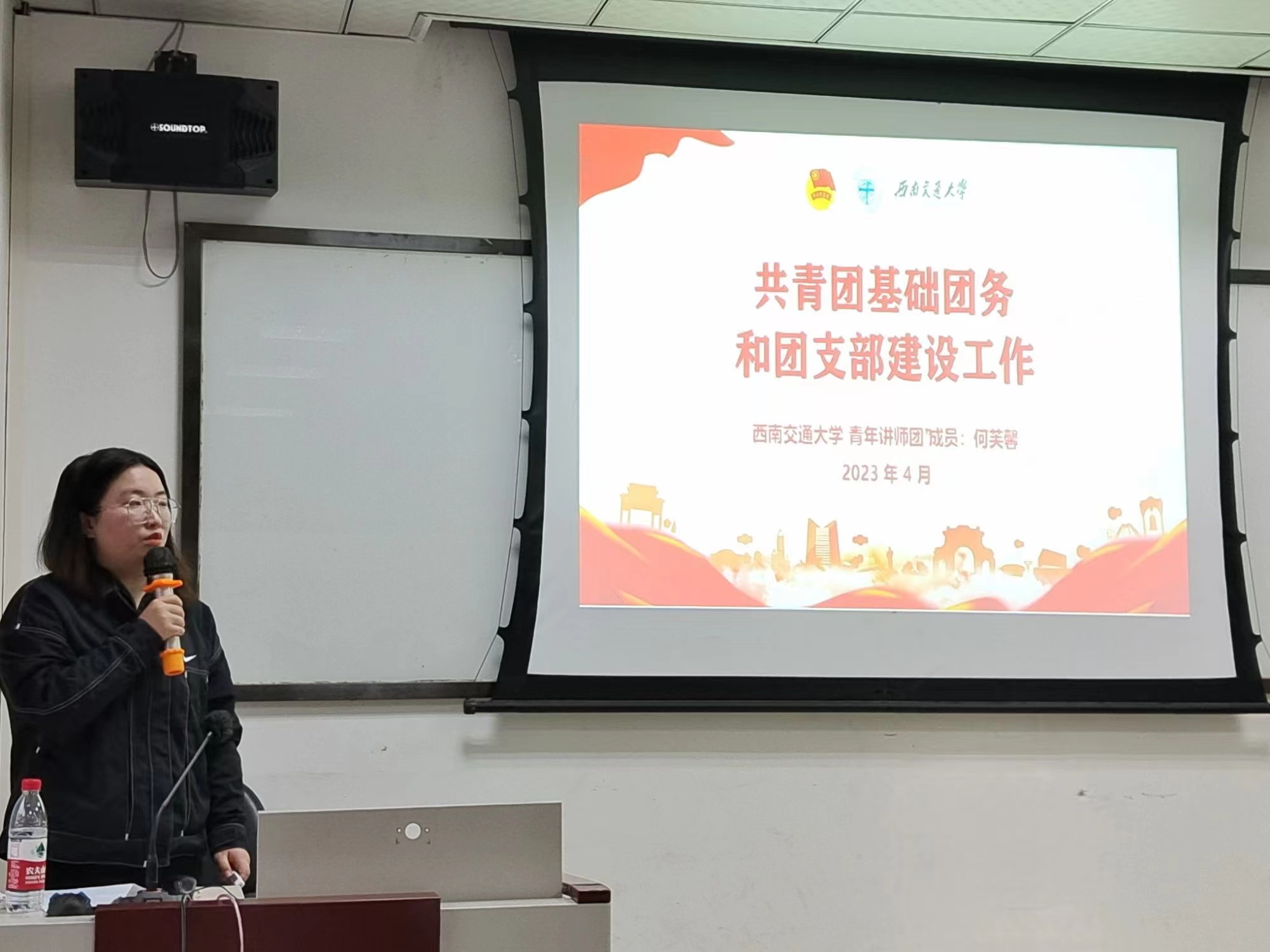 培训开始,何芙馨讲解了在中国共产主义青年团中团干部的职位分类、人员构成,并引用习近平总书记在庆祝中国共产主义青年团成立100周年大会上对广大共青团员的期望和广大团干部的要求,以此鼓励团干部们不断提升自我,在集体中发扬奉献精神。随后何芙馨为团干部们介绍了共青团的象征和标志,并详细说明了团旗团徽的样式、应当使用团旗团徽的情形以及有关团旗悬挂的注意事项。