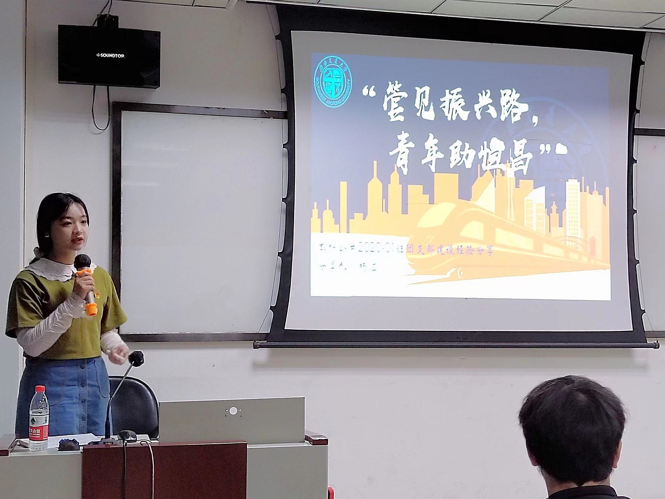 完成对共青团的基本介绍后,何芙馨着重为团干部们介绍了公司的团支部建设工作。首先是关于学校在开展青年团工作时的基本思路:巩固班级团支部的基础地位、实现研究生团支部建设全覆盖、探索青年教工团建新路径。随后具体介绍了公司的特色团支部工作模式,实施“1+5+X”计划,在培养德智体美劳全面发展的社会主义建设者和接班人的基础上,发展团支部的“X”特色。并以哈哈体育工力(拔尖)2019-01班团支部为例:其从思想政治引领、班团活动引领、学风建设引领三个方面展示了特色的班级风采。接着何芙馨讲解了什么是“三会两制一课”,并简要介绍了学校的青马工程,鼓励团干部们坚持理论学习,积极配合“三会两制一课”制度的开展,抓住实践锻炼机会。