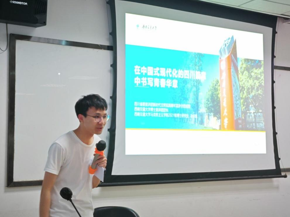培训开始,冷书恒以现代化的基本内涵为切入点,从多个方面讲述了四川的现代化建设进程,讲述了四川从经济大省发展到经济强省、作为西部内陆省份走向开放前沿、以多民族人口大省的定位奔赴团结和谐与共同富裕的历程。接着,冷书恒向同学们分享了上个世纪80年代末在四川全省开展的克服“盆地意识”的大讨论,鼓励同学们要进一步解放思想,将自己的命运与党和国家的命运紧密联系起来。四川在中国式现代化进程中已经取得卓有成效的成绩,因此我们更应当不忘初心,时时自勉,志存高远,紧跟党走,在新时代里续写瑰丽篇章。