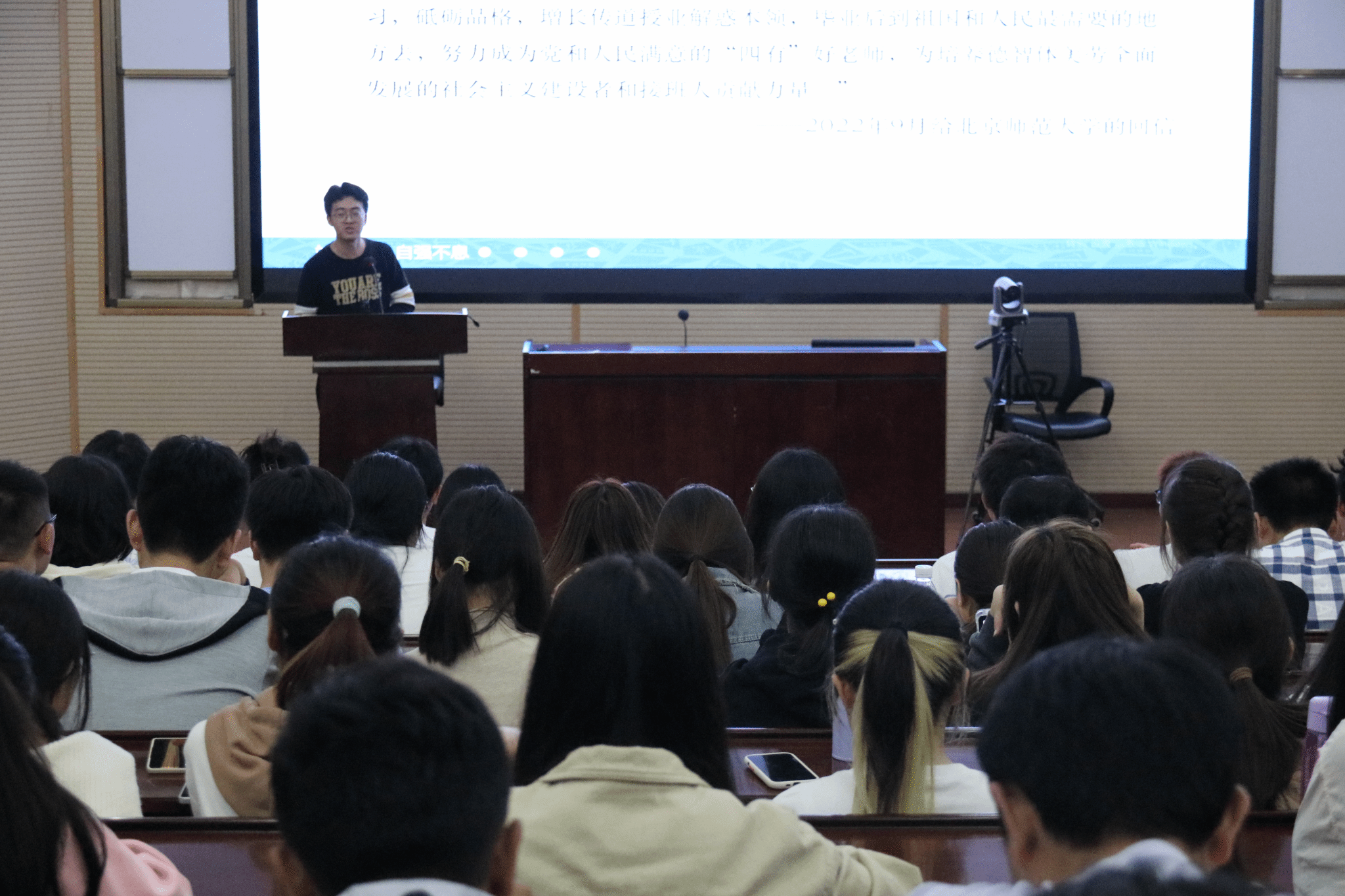 首先,辅导员王子琦带领2022级同学学习习近平总书记考察高校重要讲话、给师生重要致信回信精神等内容,并以“脚踏实地”、“刻苦学习”、“坚定目标”等关键词教育同学们要牢记习近平总书记对青年员工的殷殷嘱托,立志成长为新时代好青年,在将“小我”成长发展融入“大我”奋斗的火热实践中深入思考“民族复兴,青年何为”。
