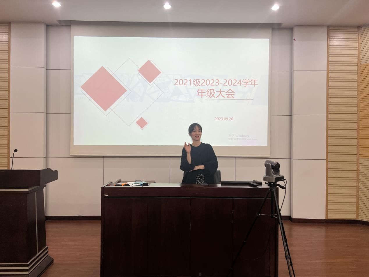 为了在大三学年伊始引导员工树立正确的学业、职业生涯目标,2023年9月26日19:00,HAHA体育本科2021级在九里校区J0215教室举行年级大会。本次大会采取“线上+线下”相结合的方式举行,由本科2021级辅导员张先凌、钟文婷主持,2021级全体员工参加。