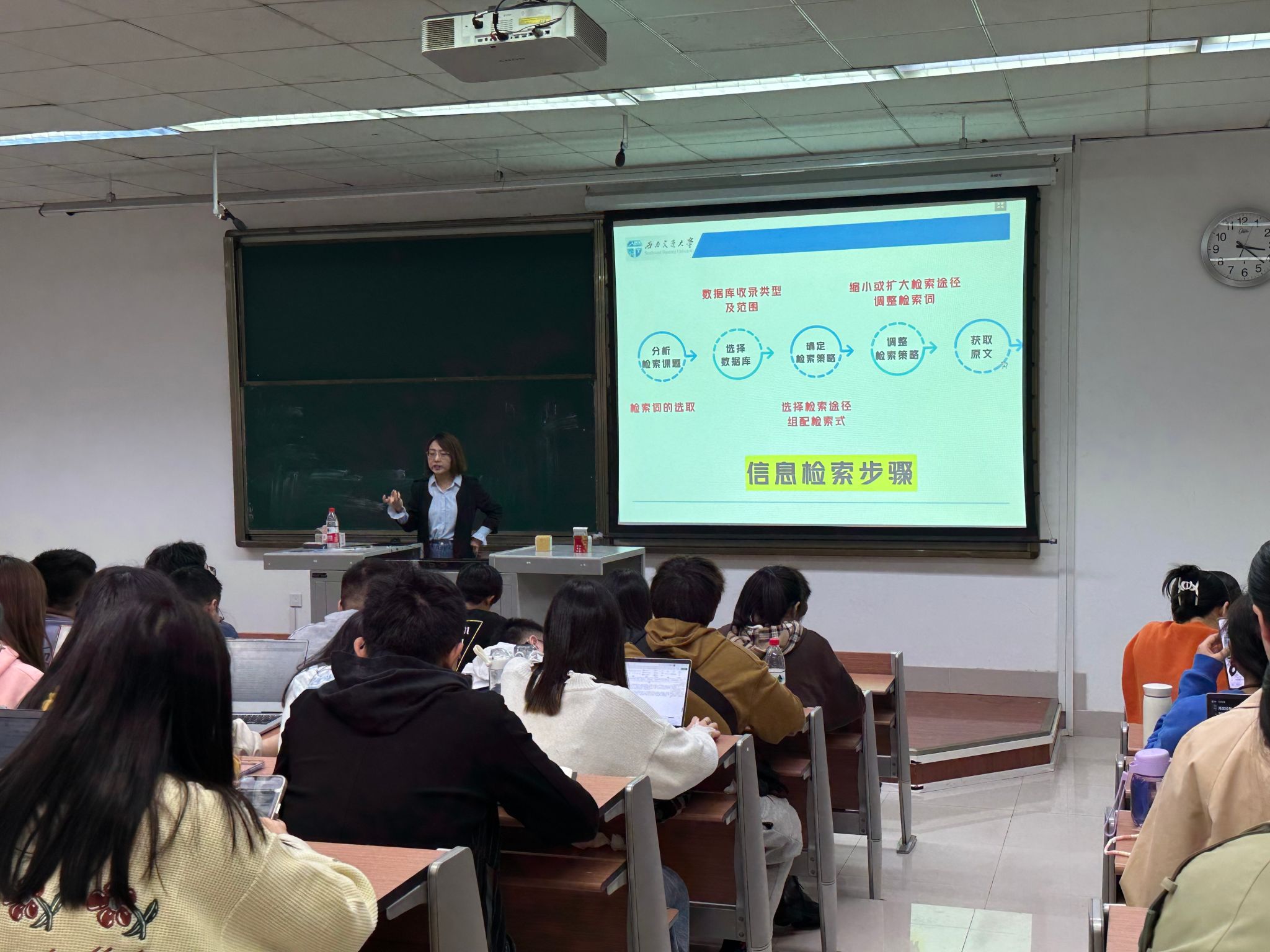 2023年10月26日,HAHA体育邀请哈哈体育图书馆李颖老师,为2023级研究生新生开展了一场图书馆数据库应用培训讲座。参加本次培训的还有研究生辅导员贺小轩和李勇老师。