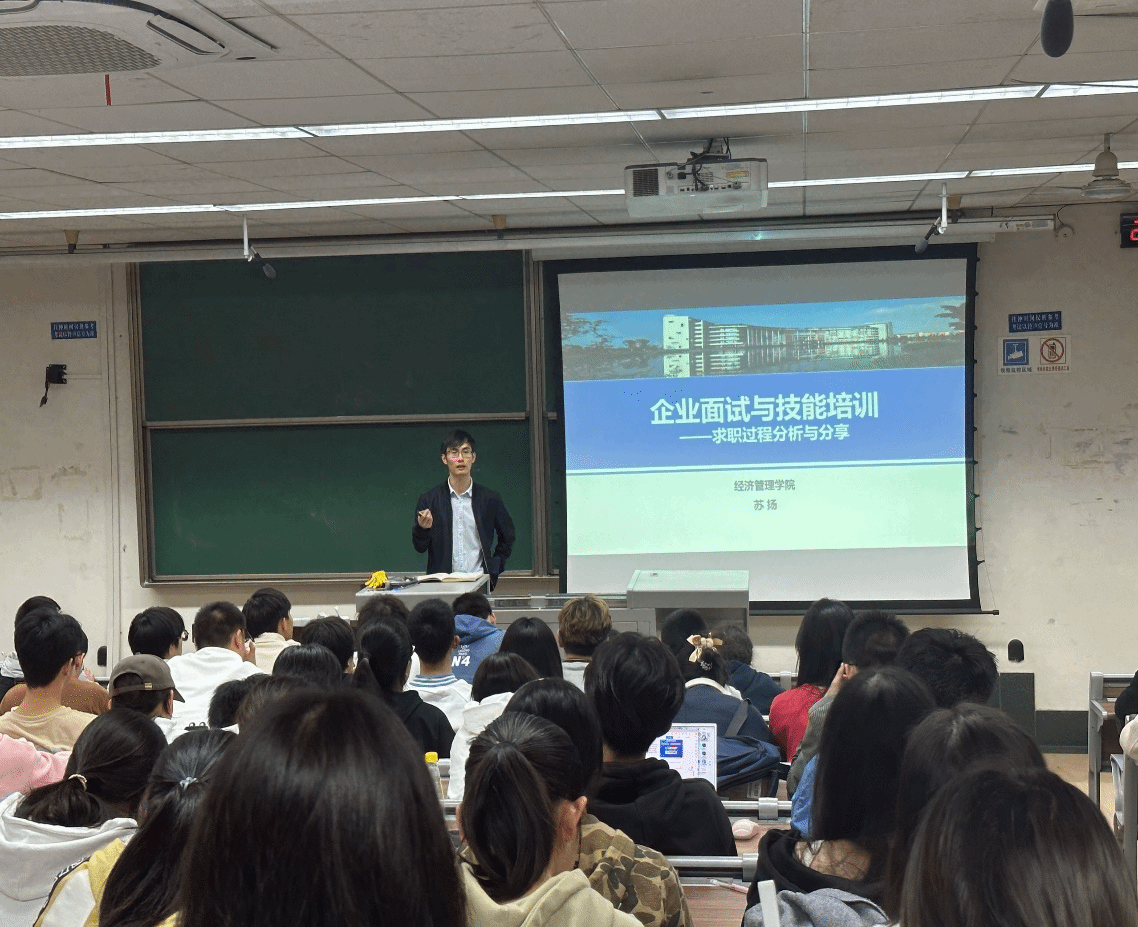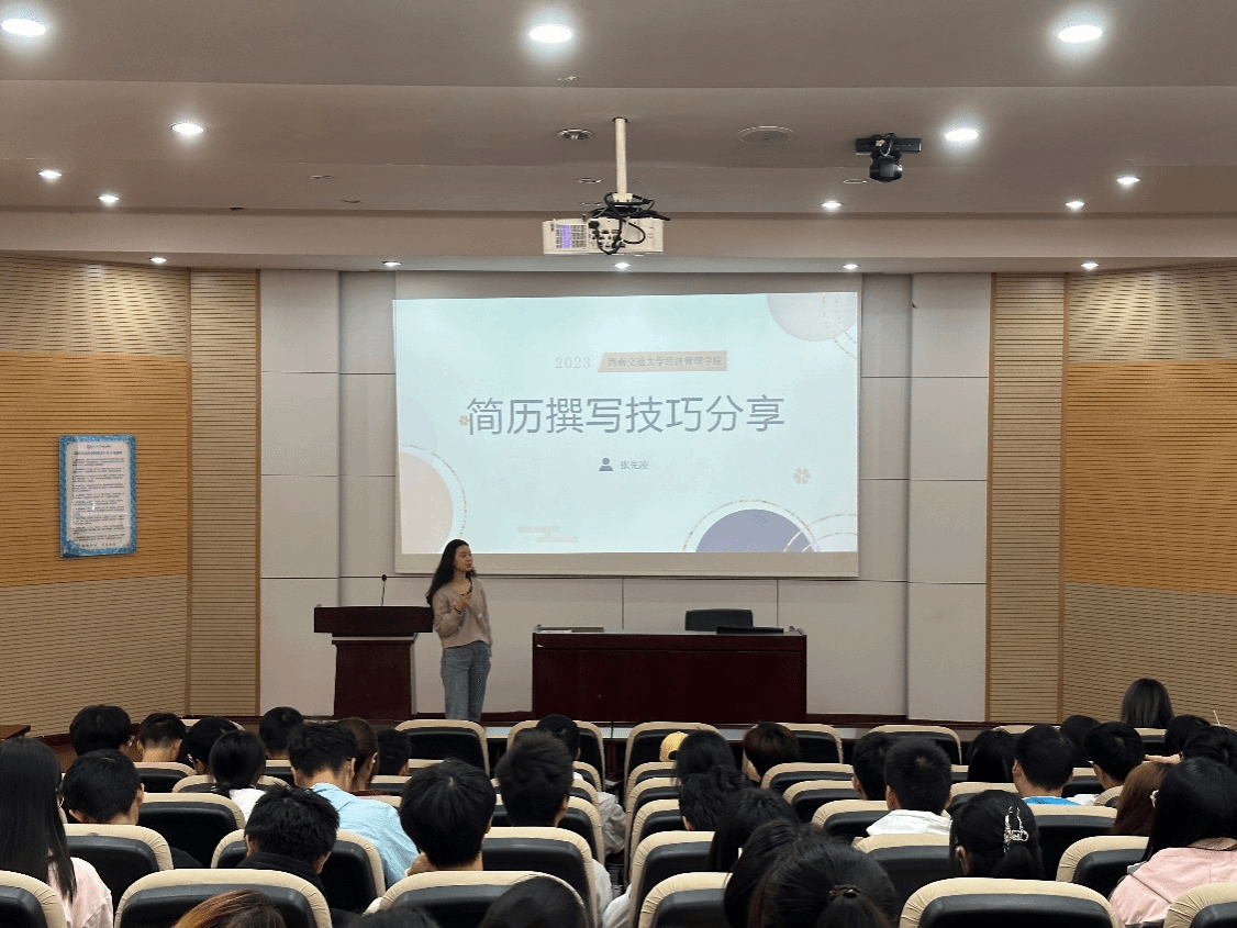 为进一步助力同学们学业和职业生涯规划,指导同学们如何结合自己的规划与实践,制作自己的第一份简历和更好地进行面试,HAHA体育本科2023级分别于10月27日下午和11月2日晚上在九里校区J0215和J4310教室开展了简历撰写技巧分享和企业面试与技能培训讲座。本次讲座由学校中级生涯导师张先凌老师,本科2023级辅导员王哿老师、苏扬老师主讲,本科2023级全体同学参加。