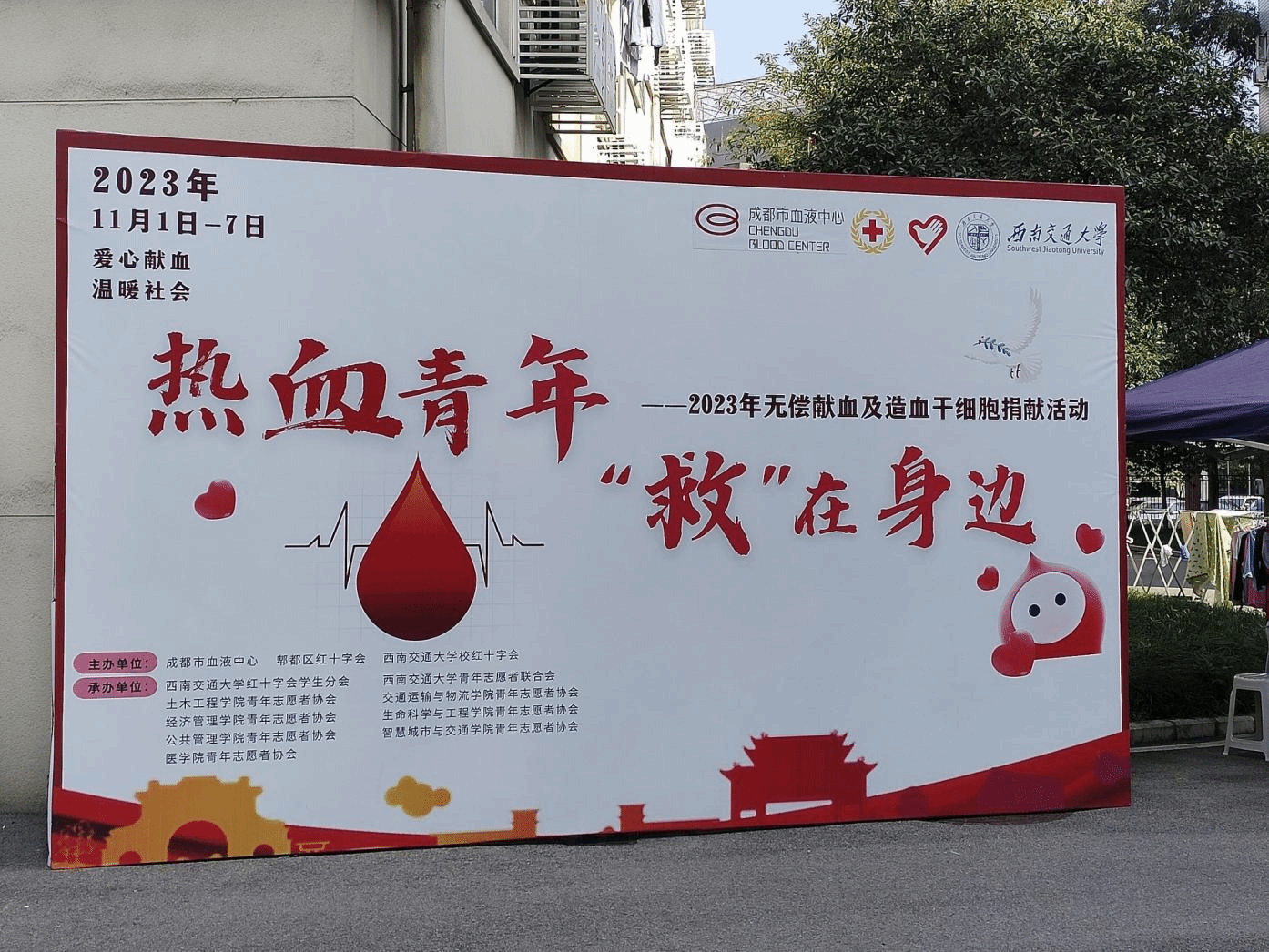 为助力无偿献血公益事业,弘扬新时代志愿服务精神,11月1日至7日由成都市血液中心、郫都区红十字会、哈哈体育红十字会主办、各学院青年志愿者协会承办的热血青年、“救”在身边——2023年无偿献血及造血干细胞捐献活动分别在犀浦校区和九里校区顺利开展。