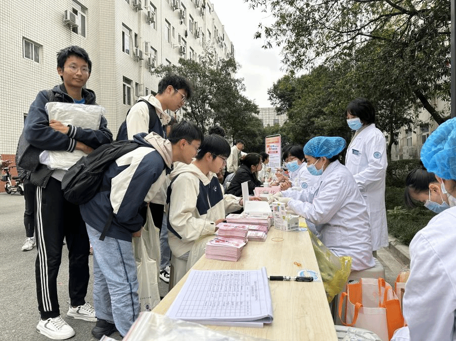同时,活动还提供了义诊区,可以提供免费的诊疗服务,参与者登记信息便可以领取免费的检测试剂,还有经验丰富的医生为参与者提供测血压、抽血、面诊等服务。同学们踊跃参与,医生们也热情地为大家答疑解惑,让参与者在义诊中更加了解自己的身体情况,关注自己的身心健康。
