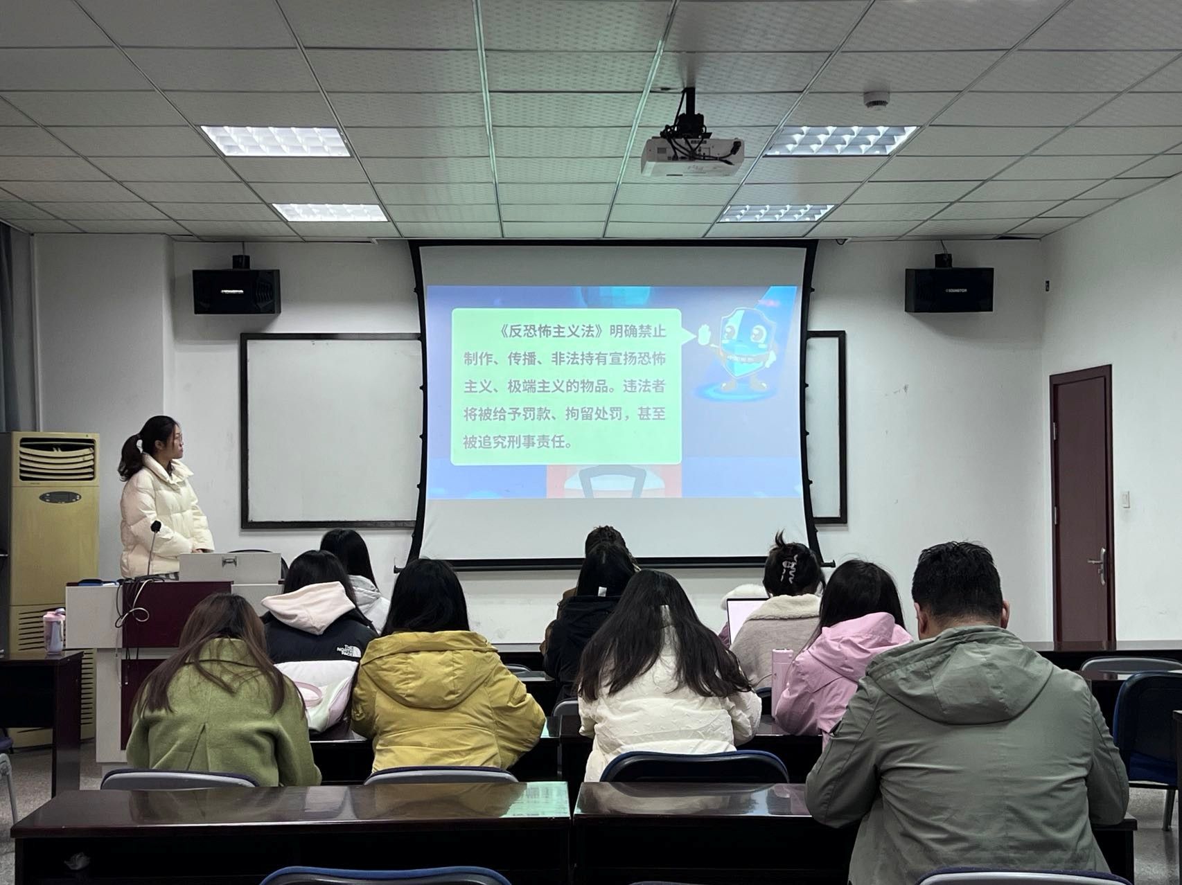 为深入贯彻落实习近平总书记关于反恐怖工作的重要指示精神,切实提升班级同学反恐怖意识和能力,营造全校安全稳定良好氛围,12月15日,HAHA体育23级硕士3班认真筹备,在0号教学楼0317顺利举办了认真学习《反恐怖主义法》专题班会,班会由班长肖晶晶与宣传委员丁洁共同主持,研究生辅导员李勇、班级全体同学参与。