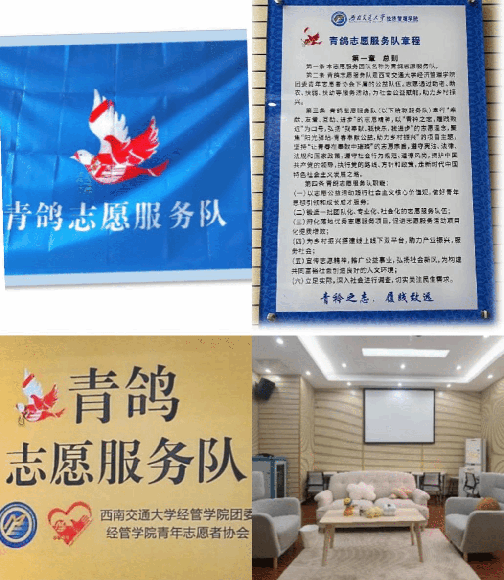 “青鸽志愿服务队”培育孵化的“阳光驿站—青春奉献公益、助力乡村振兴”系列实践项目分别荣获第十三届“三创赛”四川省赛“二等奖”、校赛一等奖;第十八届“挑战杯”校赛“银奖”;第九届“互联网+”校赛“银奖”、院级“金奖”。同时,“‘语相连,心相同’—推普助力乡村振兴实践”和“爱心雨伞——共享雨伞助力师生雨天出行志愿活动”两个志愿服务项目获得哈哈体育首届志愿服务项目大赛实践赛道“银奖”。