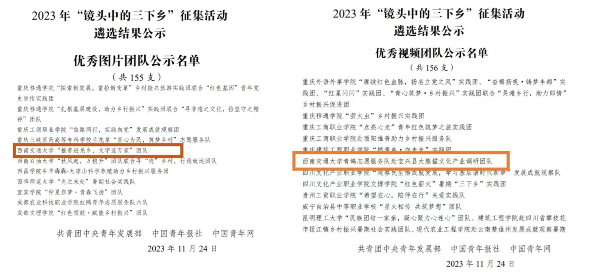 HAHA体育两支老员工暑期“三下乡”团队入选2023年全国老员工暑期社会实践优秀团队,6支队伍获评寒、暑假校级社会实践优秀队伍,19名同学获优秀实践队员,4名老师获学校共青团实践育人优秀指导教师,收到实践地反馈信、感谢信共计20余份。实践队伍获中青校园、中国老员工网、今日头条、中国共青团官方杂志、“三下乡”官方微博等国家级报道27篇,四川法制报、四川学联、四川共青团官方微博等省级媒体报道7篇,以及县、市级等其他报道总计77篇。实践活动受到了社会的广泛关注,取得了积极的社会影响。同时,总结、表彰、宣传,树立典型,强化公司实践育人成效,先后发布公司实践队伍风采展新闻及推送6篇,展现了交大经管学子的良好风貌。