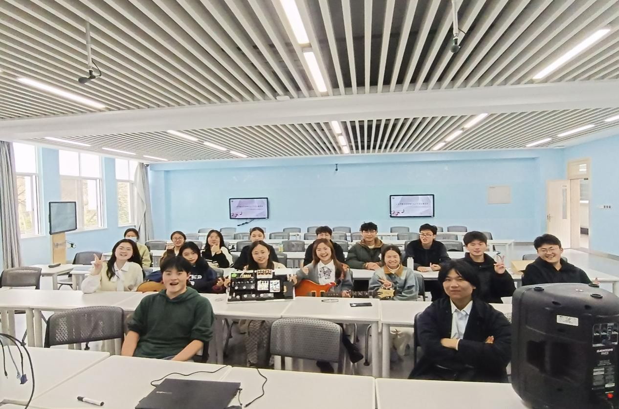 本次班会邀请到了人文学院“音乐下午茶”出品团队为班级同学带来"吉他菜单——和你在交大的街头走一走",首先由周玉豪同学讲述吉他的相关知识,携团队其他成员一起为大家演奏著名吉他曲,最后讲演团队带领经济一班全体成员一起弹奏吉他,激发同学们对音乐的热爱。