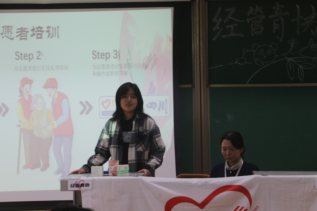在才艺表演的间隙,大会还为新干事介绍了许多青协相关内容,例如外联部宣讲了特色专项服务:聚焦儿童群体的交大幼儿园、关注老年群体的敬老院、关注社会残障人士的阳光家园、关注自闭症儿童的善工家园,以五个志愿者基地为基础,青协的志愿服务走向社会,让全社会看到当代老员工的爱心和奉献精神;活动部讲解了志愿四川操作流程,包括注册账号、加入组织、参与活动的方式,解读星级志愿者评定细则,详细介绍了成为不同等级的星级志愿者需要的服务时长和申请流程,并鼓励大家积极参加志愿活动,努力成为一名星级志愿者;实践考核部则讲解了寒暑假社会实践活动和交通公益内容:寒暑假社会实践活动在学校发布通知后,由实践考核部收集报备资料和总结材料,并协助评优,在截止日期前制定计划并上交,等待立项通知。交通公益在原有实践项目赛道的基础上,加入了创意项目赛道和文化产品设计作品赛道,增加了作品形式,让更多队伍有机会进入省级志愿服务大赛继续展示自己。此外,在经验分享中,各部门建议新干事要提前制定详细计划,联系当地部门或机构尽可能获得支持,实施过程中要与当地居民进行良好沟通,确保活动顺利进行。青年志愿者是一个响亮的名字,青年志愿者行动是一项崇高的事业,青年志愿者精神,是一代青年的精神追求。通过这些专业讲解和实践分享,增强了大家对志愿服务的理解,激发了大家参与志愿活动的热情,将爱心和责任传递给更多的人。