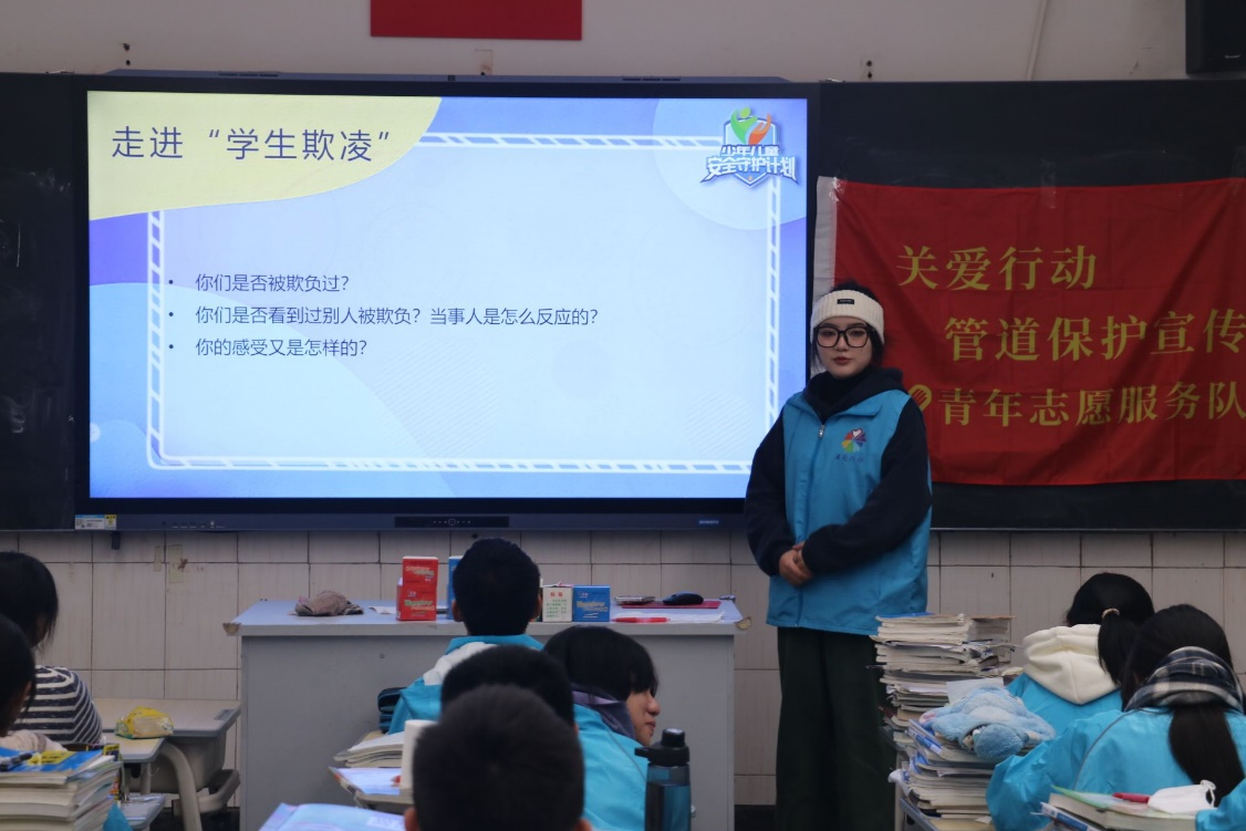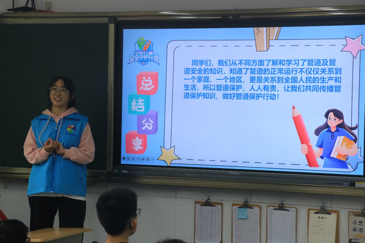 11月8日上午10点40分,青鸽志愿服务队的队员们走进了哈哈体育子弟小学六年级三班的教室,带来了一场生动有趣的管道保护宣传课程。此次课程内容丰富多样,覆盖了以下几个方面的知识点:“藏起来的公路”“西气东输知多少”“地下公路设施多”“管道保护有措施”“管道的内忧外患”“管道也要被保护”以及“管道泄漏会逃生”。
