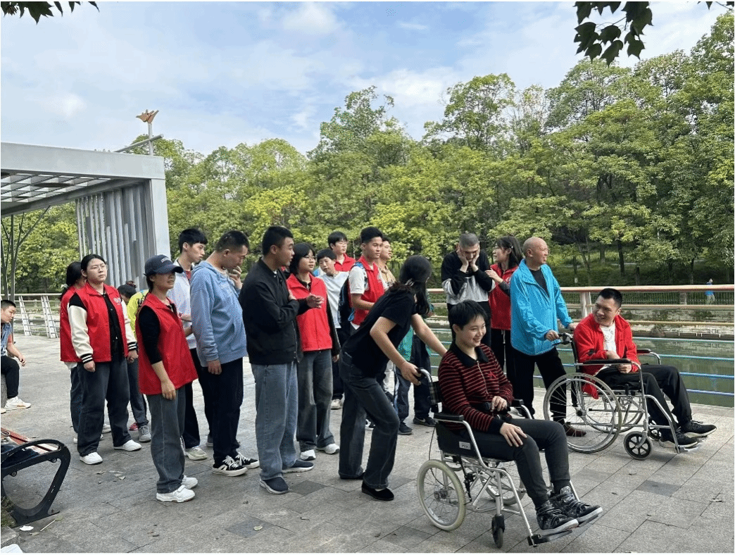 2024年10月至11月,志愿者们先后三次来到了成都市武侯区善工家园助残中心,开展了针对智力障碍儿童的志愿服务活动。志愿服务内容包括:护理陪伴、主题宣讲和游戏互动。在“乡村振兴”活动分享中,志愿者分享了他们在乡村开展振兴活动期间的所见所闻及感悟,并强调了当代青年应当关注社会热点,培养正确的价值观,积极参与到乡村振兴的发展中去;在“预防意外伤害”为主题的安全教育宣讲中,志愿者们利用生动的例子和丰富的互动,深入浅出地讲解了日常生活中的各种潜在危险,以及如何有效避免这些危险的方法,使小朋友们对身边的潜在风险有了更加深刻的认识,不仅有效提高了他们的安全意识,也在一定程度上增强了孩子们预防和应对危险的能力。在助残中心老师的指导下,志愿者们分工协作,带领小朋友前往附近的公园散心交流,那紧握的手不仅跨越了身体上的障碍,更传递了深深的信任与鼓励。在公园里,志愿者和老师们带领孩子们一起唱歌,欢快的旋律如同跳跃的音符,轻轻地打开了孩子们的心扉。大家的欢笑声和掌声此起彼伏,充满了温暖与欢乐的气氛。此外,志愿者们还在教室里带领小朋友们一起开展“击鼓传花”“涂色卡”和“丢沙发”等趣味游戏,锻炼他们的手眼协调能力和团队合作精神,提高他们的反应速度,帮助他们适应日常的生活。