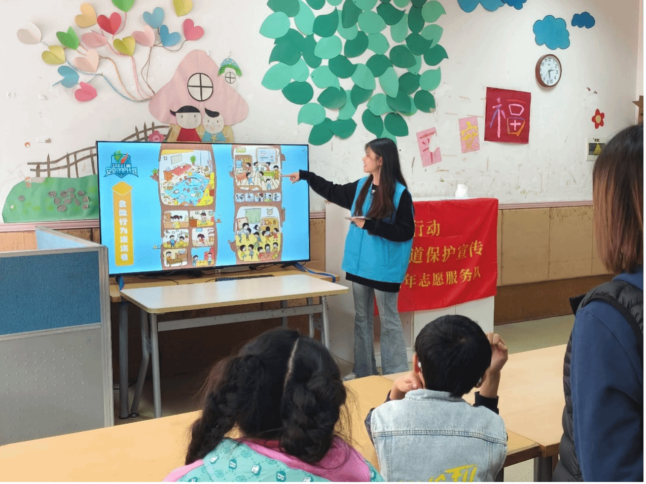活动面向三个班级开展了各有特色的公司产品活动。对于星光班的孩子们,志愿者们精心设计了一系列既有趣味性又具教育意义的小游戏,孩子们不仅体验了折纸带来的乐趣,还学会了基础的折纸技巧,提高孩子们的专注力;成长班的孩子们则踏上了一段语言艺术、绘画与认知的奇妙旅程。通过聆听一个个引人入胜的故事,激励孩子们用自己的方式去复述故事的情节;通过色彩斑斓的画笔去探索世界的多彩。在学习过程中锻炼了他们的语言表达和逻辑思维能力;职前班的孩子们,志愿者们首先安排了一场关于环保意识的教育课程,让孩子们了解垃圾分类的重要性和实践方法。随后,志愿者们创造性地设置了模拟超市和餐厅等场景,让学员们扮演收银员、服务员等角色,帮助他们更好地了解职场环境,培养必要的工作技能。