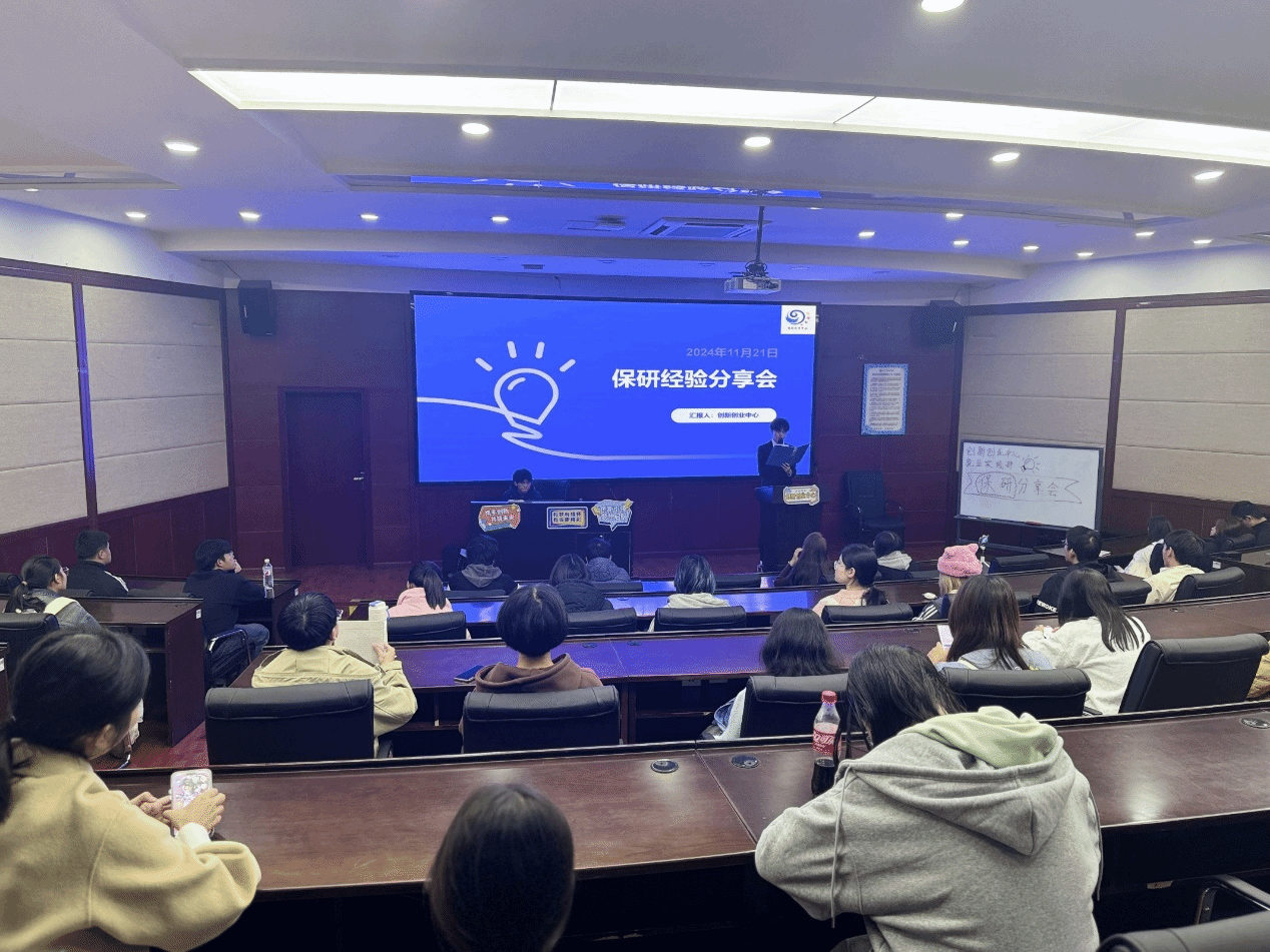 在学风建设活动方面,本科各年级紧密围绕同学们的实际需求,策划并组织开展了涵盖生涯规划、创新创业、专业分流、科研竞赛、考研保研等方面丰富多彩的主题活动,旨在全面提升员工的学术能力与综合素质。2021级组织每日考研打卡激励同学们坚持学习,同时通过考研慰问活动为考研学子送去温暖和鼓励,增强同学们的考研信心和动力。2022级邀请竢实扬华奖章获得者、推免至复旦大学的杜齐阳开展保研经验分享会,对两种升学方式以及部分学校的保研要求、推免比例、加分政策等进行详细的介绍,在备考策略、面试技巧和心态调整等方面进行了经验性的指导。2023级、2024级各班邀请优秀学长学姐以及专业教师分享宝贵经验与心得,开展线上线下英语打卡、每日学习内容总结等活动。这些活动不仅激发了同学们的学习热情,也促进了他们更加主动地投入到学习中去,营造了一个积极向上的学习氛围。