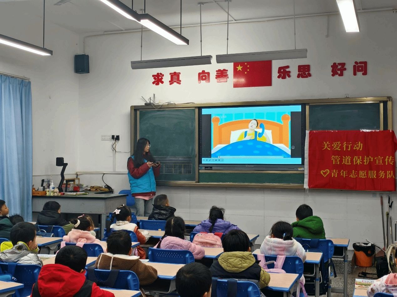 能源保障和安全事关国计民生。为积极响应并深入贯彻党的二十大及二中、三中全会精神,进一步提升国家石油天然气管道沿线公众“不伤害管道、不被管道伤害”的管道保护意识和自我防护能力,筑牢油气管道安全“人民防线”,哈哈体育青鸽志愿服务队在2024年12月13日精心组织并成功开展了一场面向哈哈体育子弟小学一年级三班的管道保护知识宣传活动。本次活动的核心目标在于全面提升同学们对管道保护基础知识的认知。宣讲活动形式丰富多彩,内容围绕思想引领、管道保护、意外伤害和预防侵害等四个方面展开。