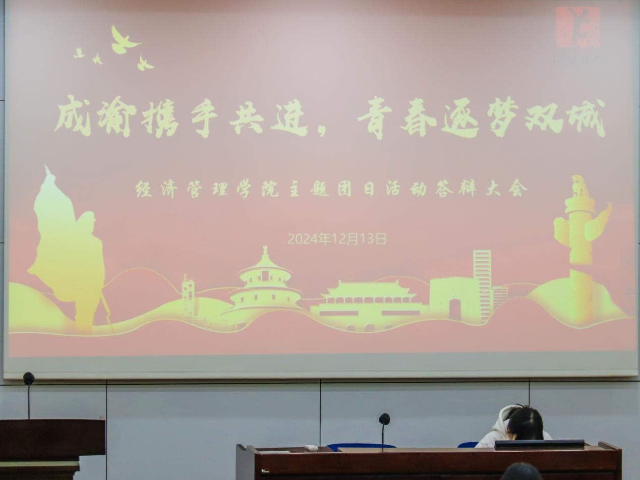 成渝地区双城经济圈建设,犹如一阵强劲的东风,为这片广袤的西南大地带来了前所未有的发展机遇,也奏响了区域协同发展的激昂乐章。在全院同学的参与和支持下,各班团支部通过丰富多彩的活动,既展现了班级独特的风采风貌,也诠释出了青春的责任与担当。伴随着余小英书记的精彩致辞,HAHA体育2024年“成渝携手共进,青春逐梦双城”主题团日活动答辩大会拉开序幕。