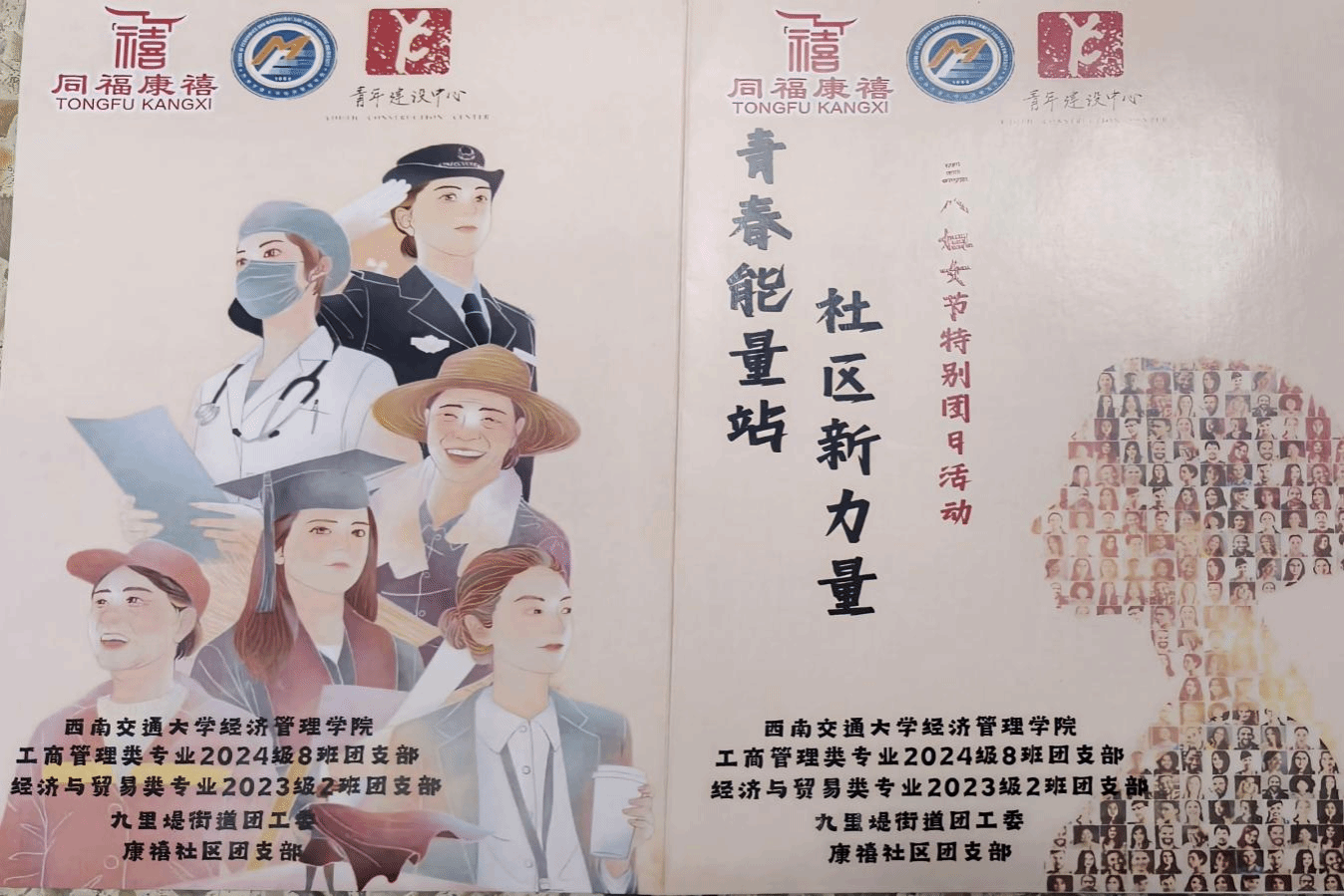 为庆祝“三八”国际劳动妇女节,深入学习贯彻党的二十大精神,3月8日,共青团HAHA体育委员会和九里堤街道社区一起开展了“青春能量站,社区新力量——了不起的中国女性”,具体参与本次主题活动的是工商管理类专业2024级8班团支部和经济与贸易类专业2023级2班团支部以及康禧社区团支部。