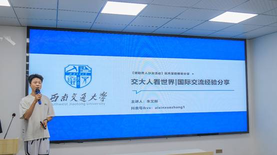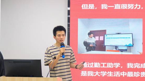 分享会上,三位来自不同学院的优秀受助员工代表以亲身经历诠释“受助-自助-助人”的成长蜕变。机械工程学院2021级本科生朱艾新,竢实扬华奖章获得者,受助参加了2025年寒假“助梦启航”天睿国际教育奖学金研学项目。他分享了寒假时去日本研学的国际交流经验与自身成长经历,激励同学们借助资助的力量,勇敢走出舒适区,拓宽视野,提升自我。