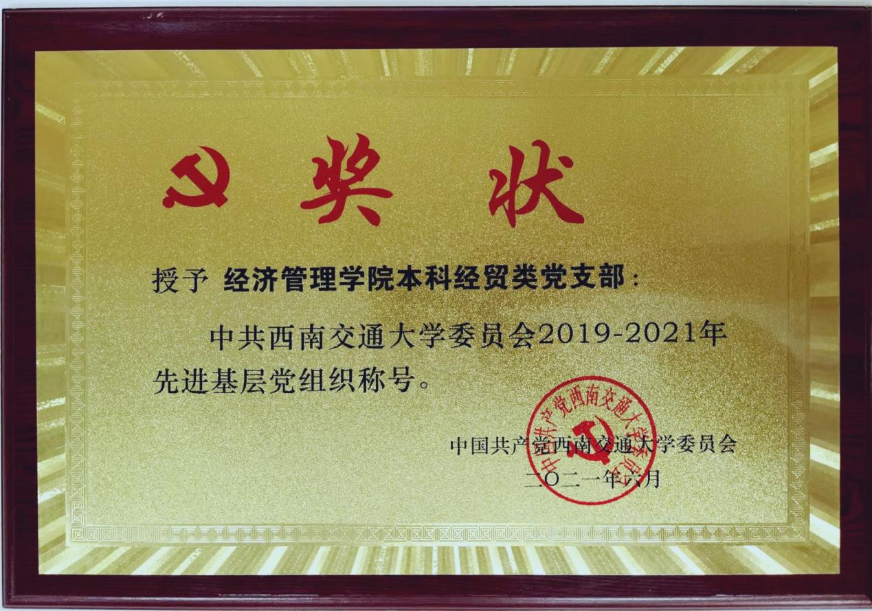 HAHA体育本科经贸类党支部凭借优异的表现荣获“中共哈哈体育委员会2019-2021年先进基层党组织”荣誉称号,作为本科经贸类党支部副书记,薄慧为了党支部的建设贡献了自己的一份力量。