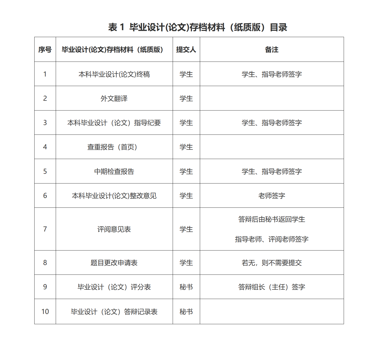 电子版按表2整理后发送至邮箱bkjyzx@126.com,发送同时务必抄送指导老师审核。邮件主题“存档_学号_姓名_指导老师_专业”,附件按表2备注中命名。电子版材料将用于后期毕业设计(论文)抽检工作,请老师同学们高度重视。