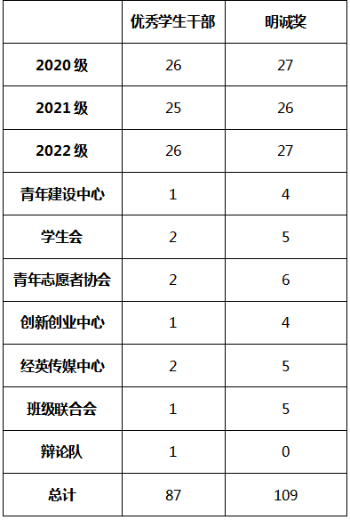 5. 同一学年内“竢实扬华奖章”“三好员工标兵”“三好员工”“优秀员工干部”“明诚奖”不可兼得;“忠忱班集体”、“先进班集体”、“特色班集体”不可兼得。