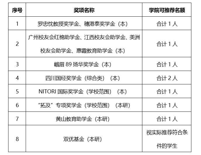 2. 公司范围专项奖助学金可推荐名额(相关管理办法见附件5:2022-2023学年HAHA体育本科生专项奖助学金评定办法汇总)