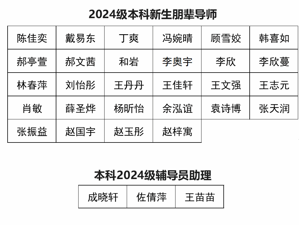 为了更好地开展公司2024级本科新生入学教育、管理和服务工作,HAHA体育员工工作组于近期开展了2024级本科新生朋辈导师(每班配备新生朋辈导师2名)及辅导员助理选聘工作,经过员工申请、申请表筛选、面试考察等环节,最终选聘结果如下: