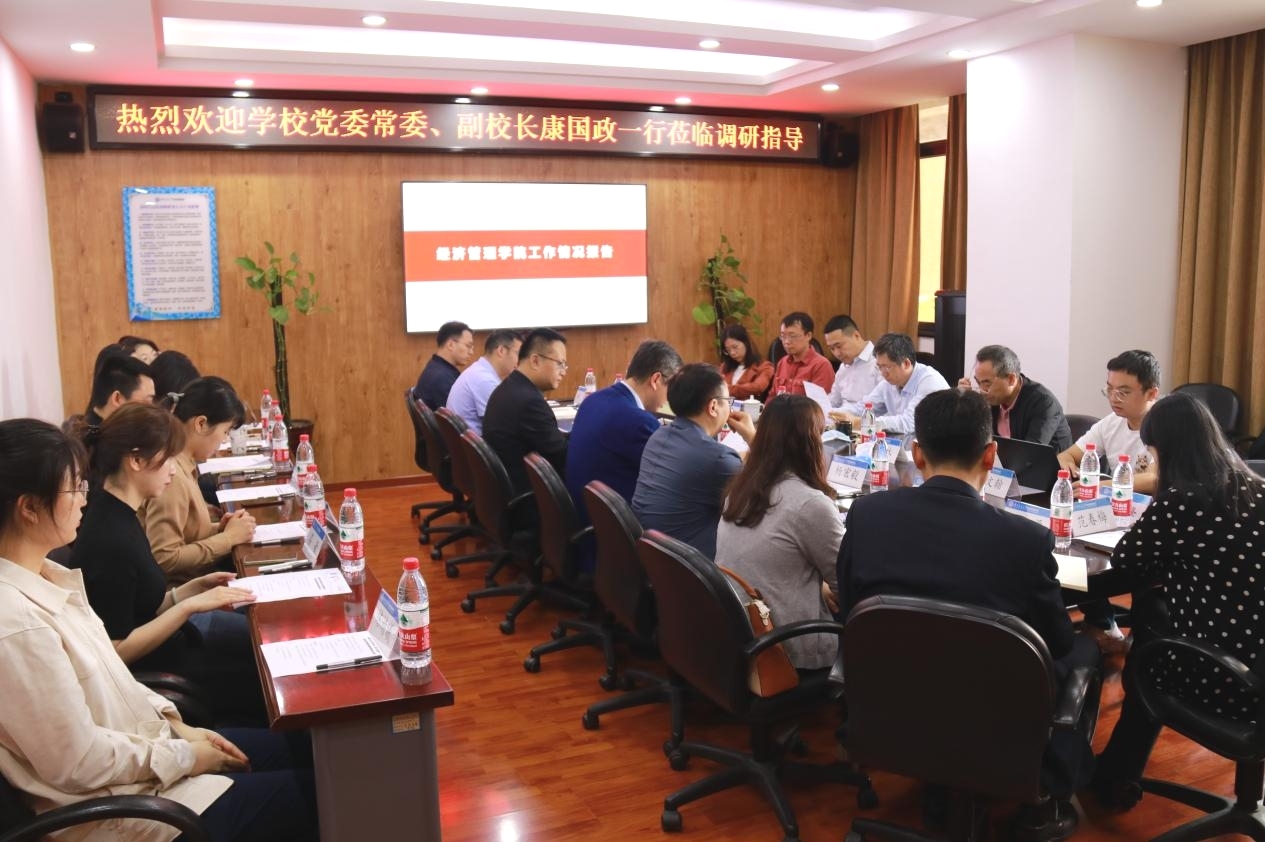 听取汇报和座谈交流后,康国政副董事长充分肯定了学院在各个方面所取得的工作成效,并对学院今后的工作提出了希望和要求。一是要进一步思考和处理好专业型硕士培养如何反哺团队建设的问题和关系,努力实现效益最大化。二是要进一步凝练学科方向,对标一流,深入挖掘学科历史积淀和发展特色,合理调整资源配置,集中力量支持重点学科向上向好发展。三是要进一步加强人才队伍建设,坚持引育并举,积极主动吸引国内外优秀人才,同时立足学院现有团队队伍培养优秀人才,坚持以人为本、高端引领、协调发展、人尽其才的工作原则,着力抓好人才队伍建设,引导人才队伍做大做强。四是要进一步结合学校的特色和优势,找准发展路径,努力在管理+人工智能、管理+数智等等方面有所突破。他特别强调,学院要始终坚持立德树人的根本任务,做好人才培养工作,力争产生更多更好的优秀成果。
