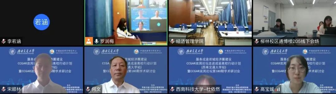 2022年5月21日,中国政府审计研究中心"服务成渝双城经济圈建设,CCGAR双周论坛走进成渝高校行动计划(哈哈体育站)"在公司成功举办。康奈尔大学杨平教授、哈哈体育李芾教授、中央财经大学宋顺林教授、中国中铁股份有限公司何文先生作了主题报告,哈哈体育博士研究生肖琳分享了工作论文。哈哈体育党委常委、副董事长刘长军及HAHA体育执行经理郭强致欢迎辞,郭强和中国政府审计研究中心主任蔡春教授分别作了论坛总结发言和答谢致辞。