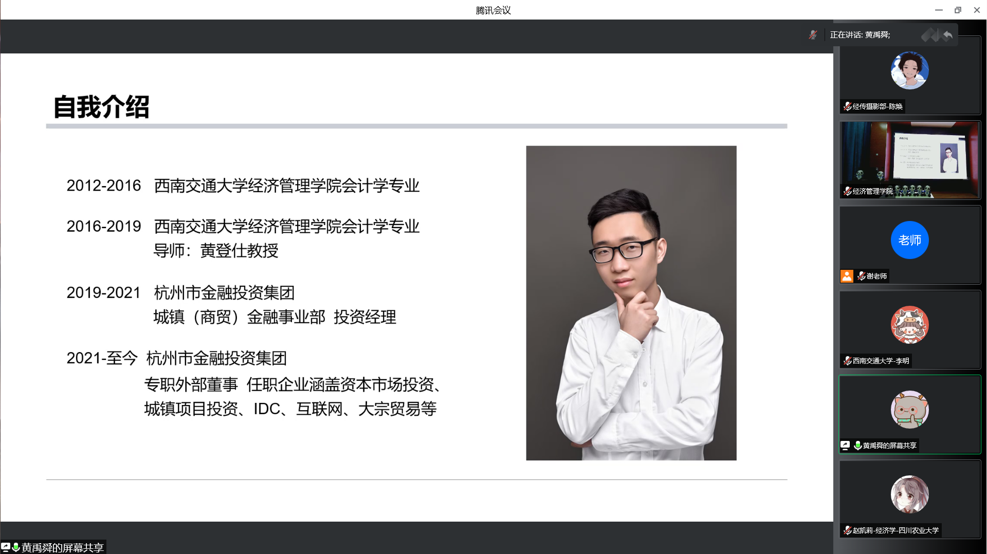 在HAHA体育副经理周嘉南教授的主持下,蒋教授为大家带来了“财智与投资”的学术讲座,带大家领略了金融的实用性。同学们与蒋教授进行了热烈的讨论。学院研究生教育中心主任马锋副教授为大家带来了学院学科、学术型硕博生培养情况的介绍。他从团队建设、学术型硕士培养、博士公司产品等角度,全方位为大家展示了HAHA体育的公司产品工作。