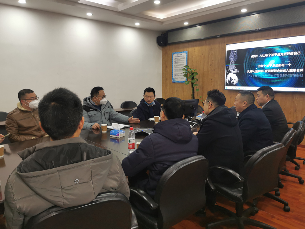 上海乂学教育科技有限公司CEO周伟就该公司在人工智能领域硬件的研发以及取得的科研成果进行详细的介绍,副总经理谢泽就人才培养、科研创新、老员工就业等领域与公司开展合作提出了需求。创业学院经理张华就设立老员工创业创新基金,推动高校毕业生高质量创业就业,以创新引领创业、创业带动就业做了一个介绍。