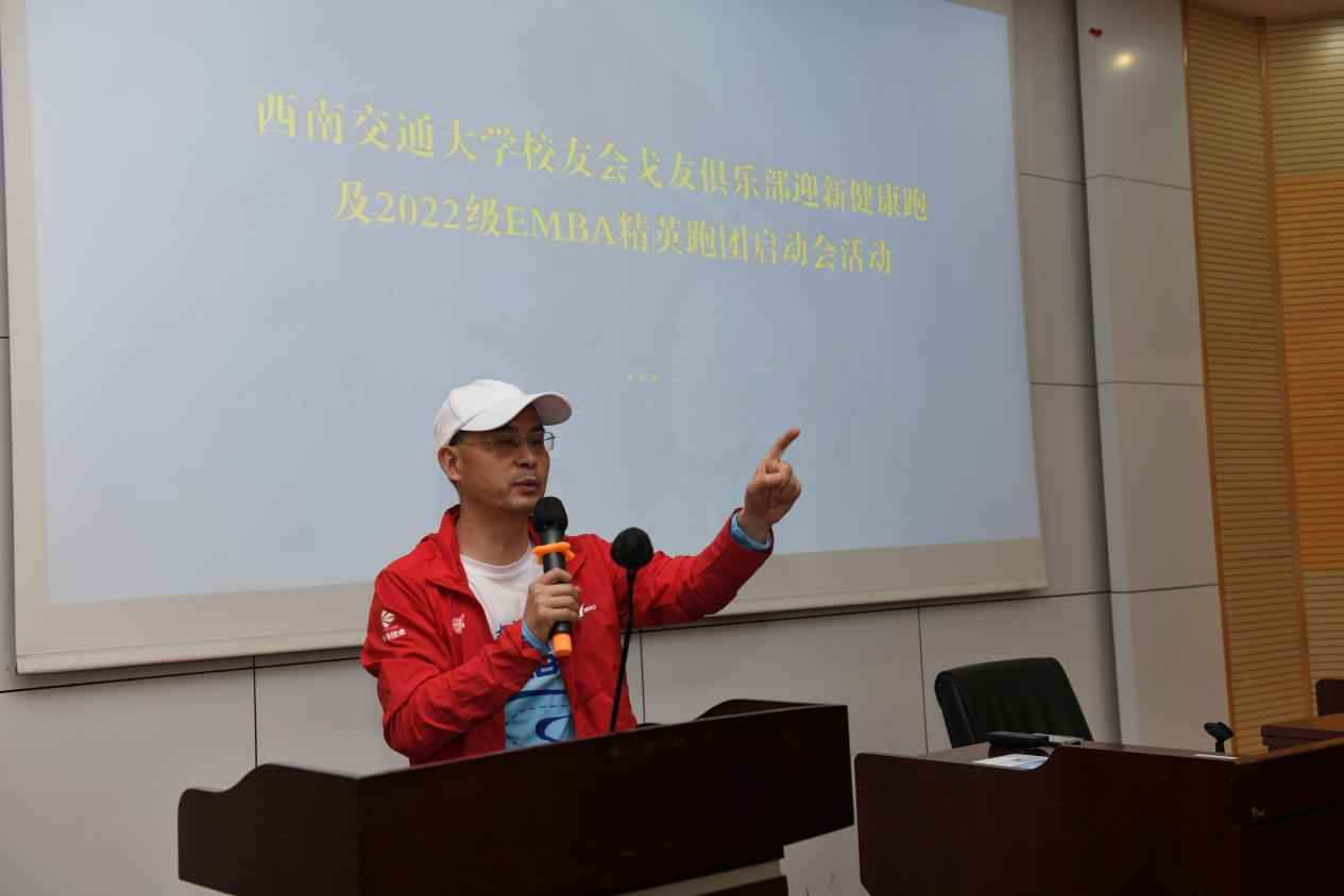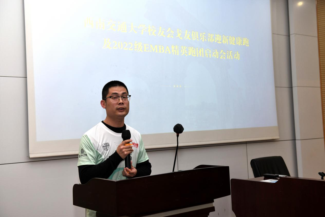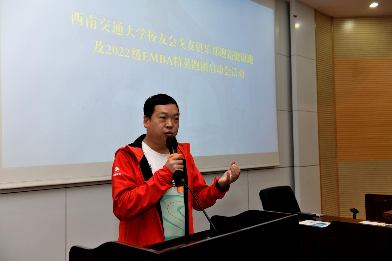 首先,执行经理郭强代表学院致辞。他对EMBA员工会戈友会俱乐部“老戈”们的到来表示欢迎,鼓励2022级EMBA同学们参加到菁英跑团和戈壁挑战赛活动中来,号召大家积极参与运动,强身健体,加强彼此的交流和互动,并强调要注意安全,把健康运动、科学运动成为一种自觉的习惯。